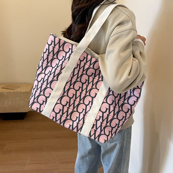 New Printed Casual Large Capacity Tote Shoulder Bag Powder Pink color