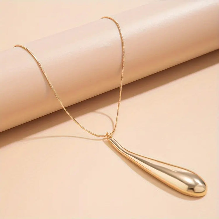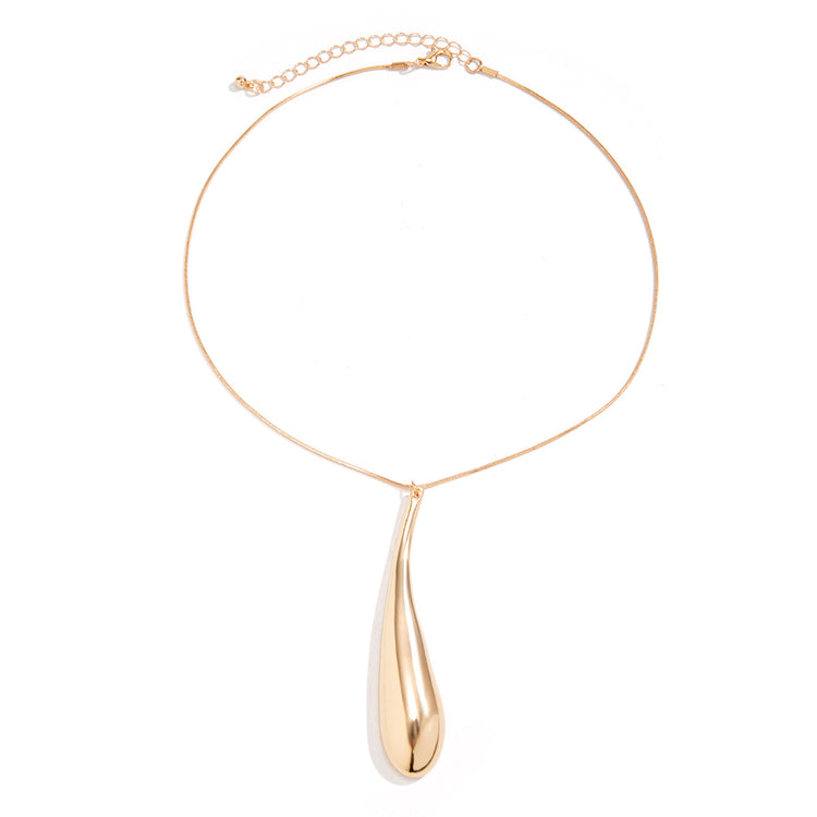 Exaggerated Style Water Drop Shaped Large Pendant Golden Necklace