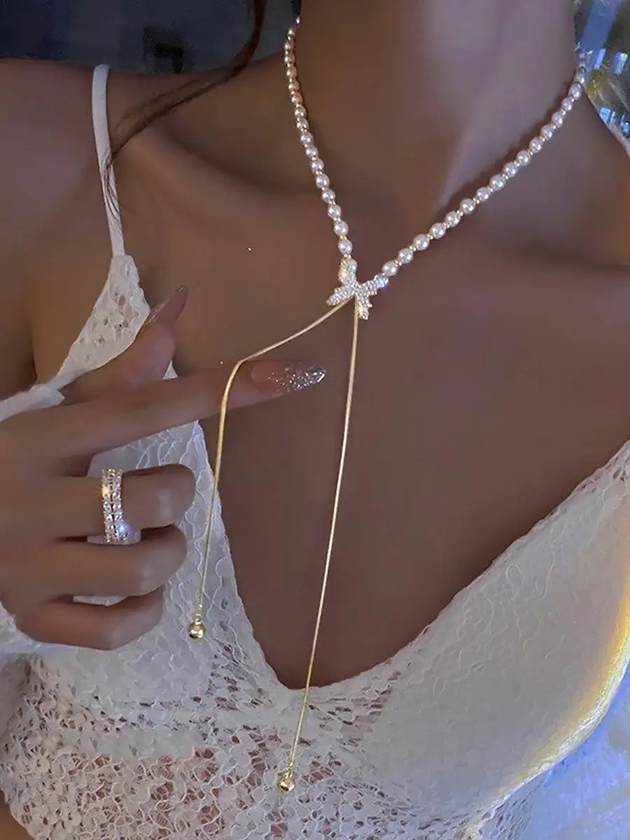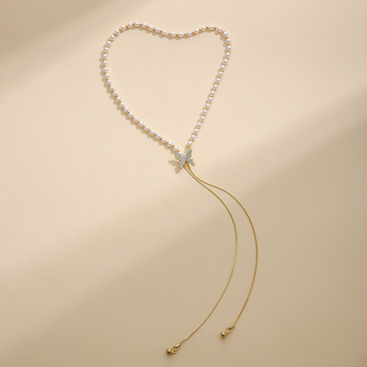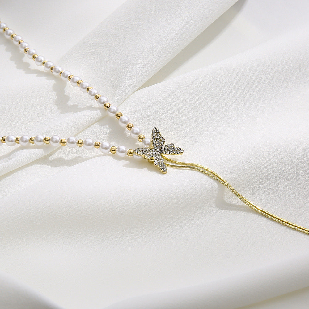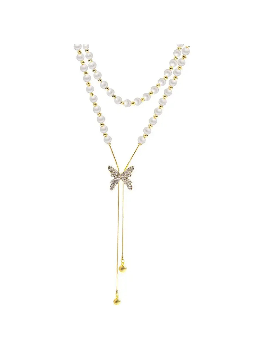 Trendy Pearl Butterfly Necklace Copper Gold Plated