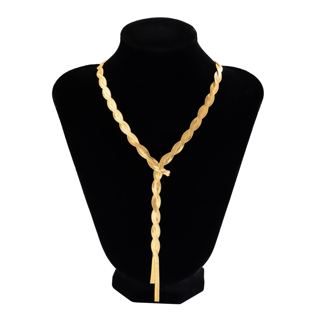 Twisted Metal Chain Necklace for Women , Gold Long Chain