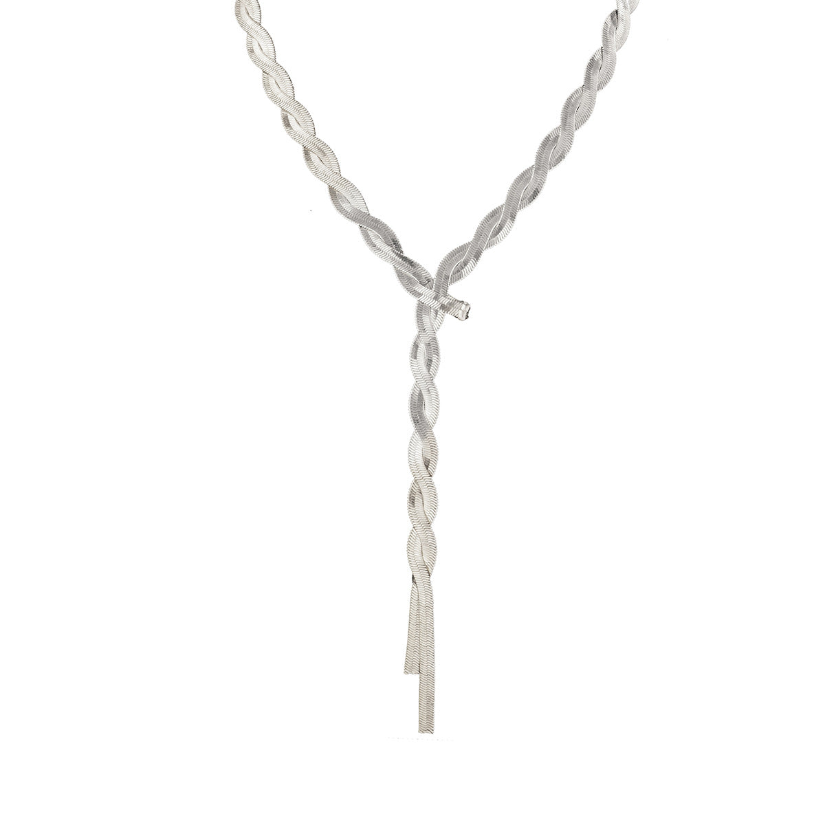 Twisted Metal Chain Necklace for Women , Silver Long Chain