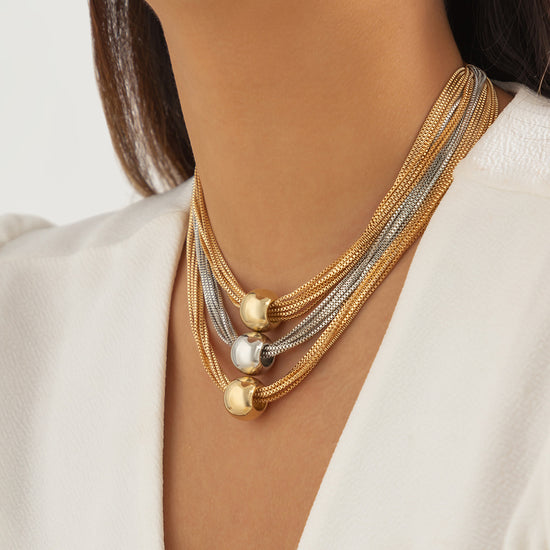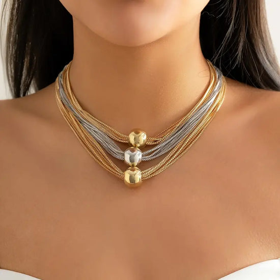 Two Tone Exaggerated Multi-layer Chain Necklace Stackable Punk Style Neck Jewelry
