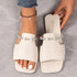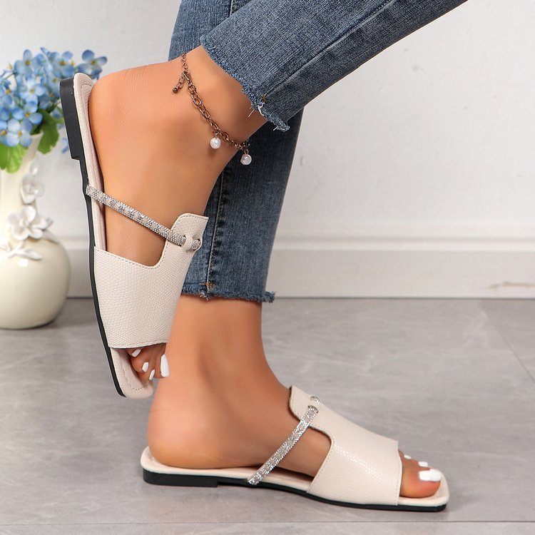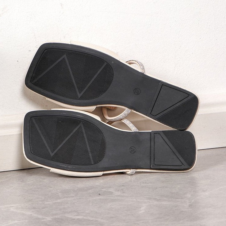 Comfortable Square Toe Rhinestone Detail Slip-On Flat Sandals