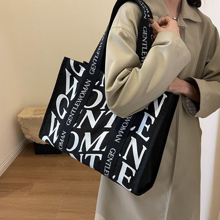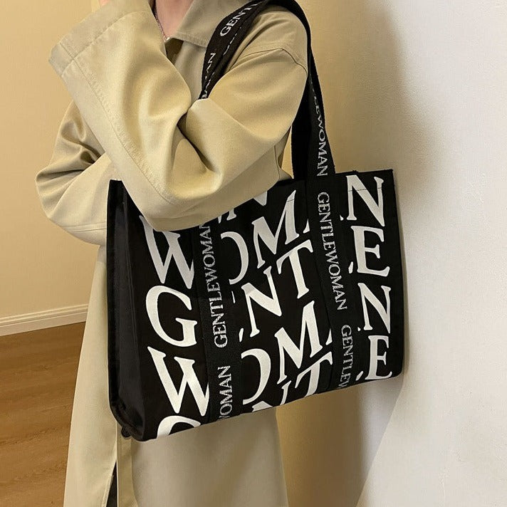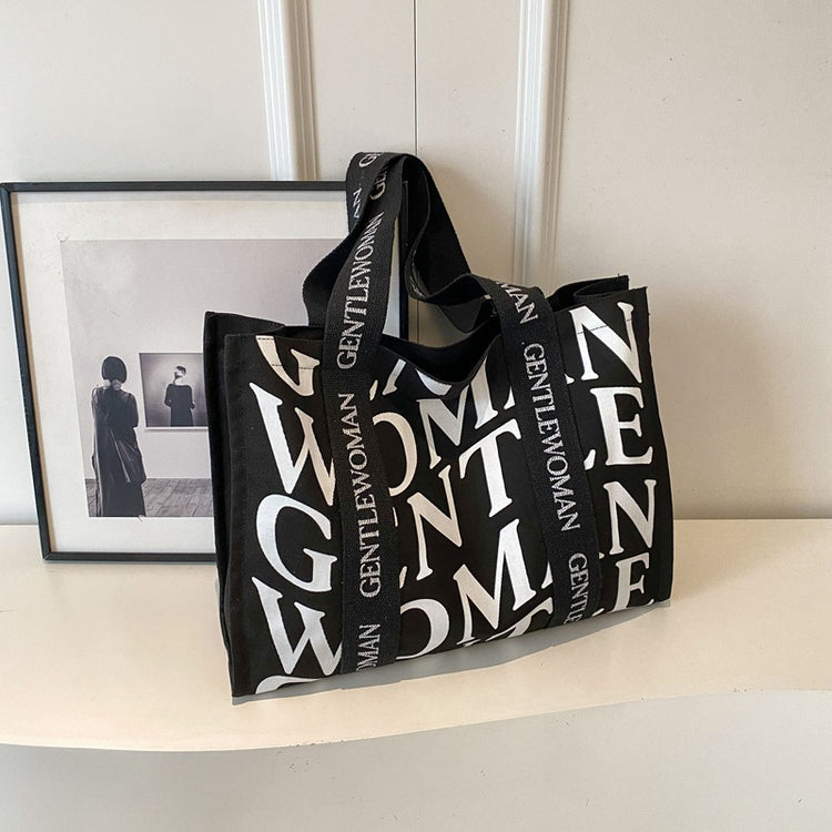 Black Big Print Elegant Large Capacity Tote Canvas Bag