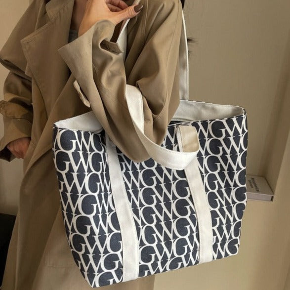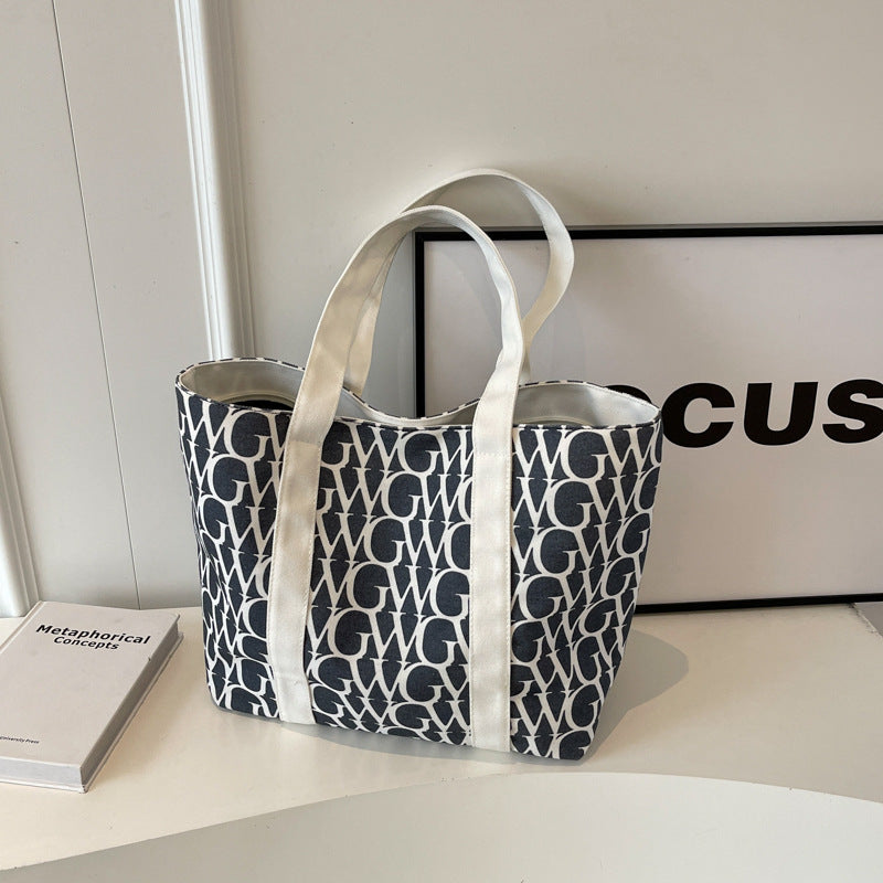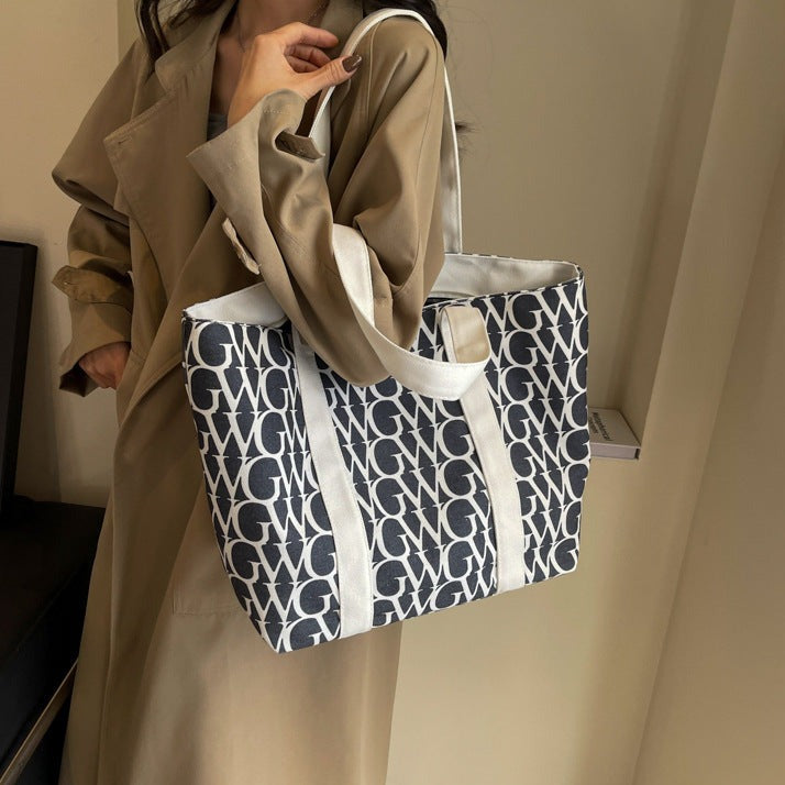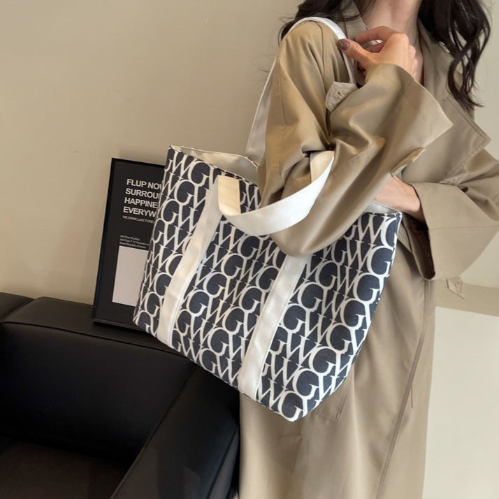 Black New Printed Casual Large Capacity Tote Shoulder Bag