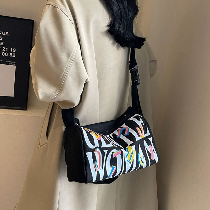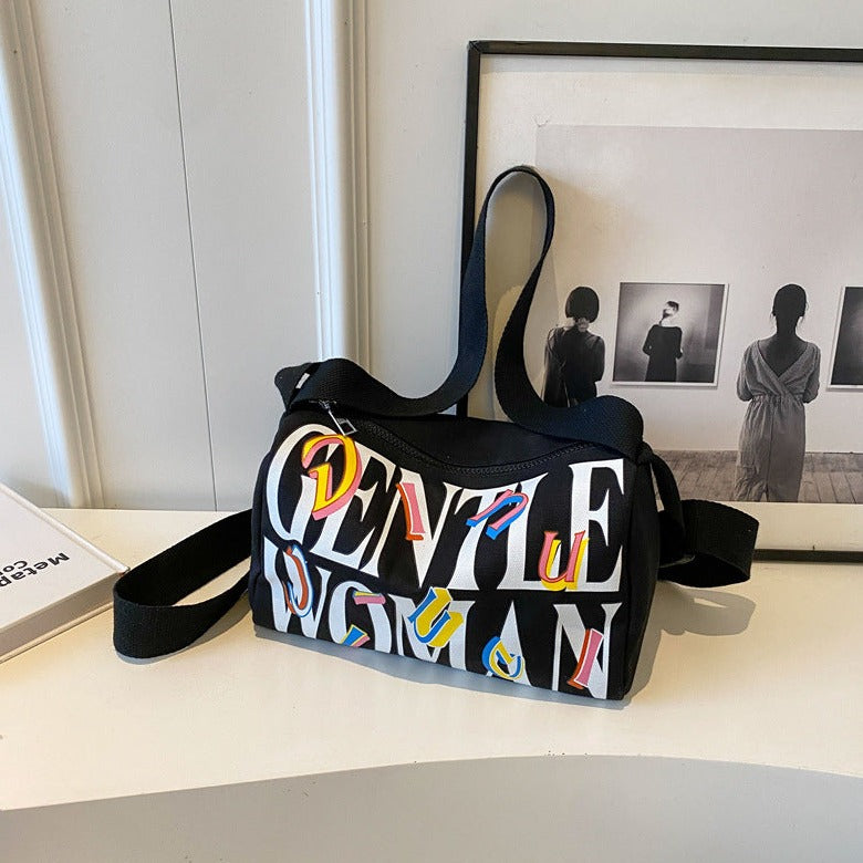 Black Printed Letters Boston Canvas Bag