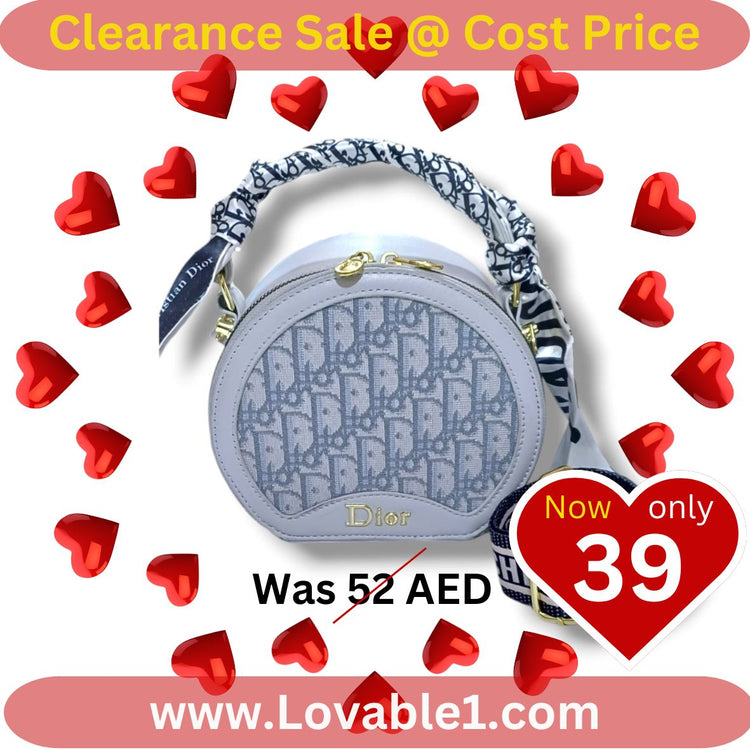 Leather with Canvas Round Sling Bag ( Gray ) ( on Clearance )