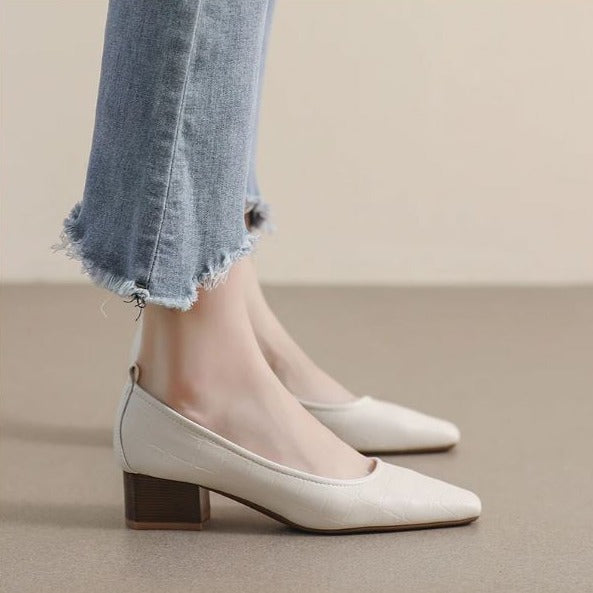Classic Minimalist Block Heel Pumps are simple and elegant women's shoes that feature a block heel and a minimalist design. these pumps are both comfortable and durable, making them a perfect choice for any occasion. The timeless design and versatile style make these pumps a staple in any fashion-conscious woman's wardrobe.