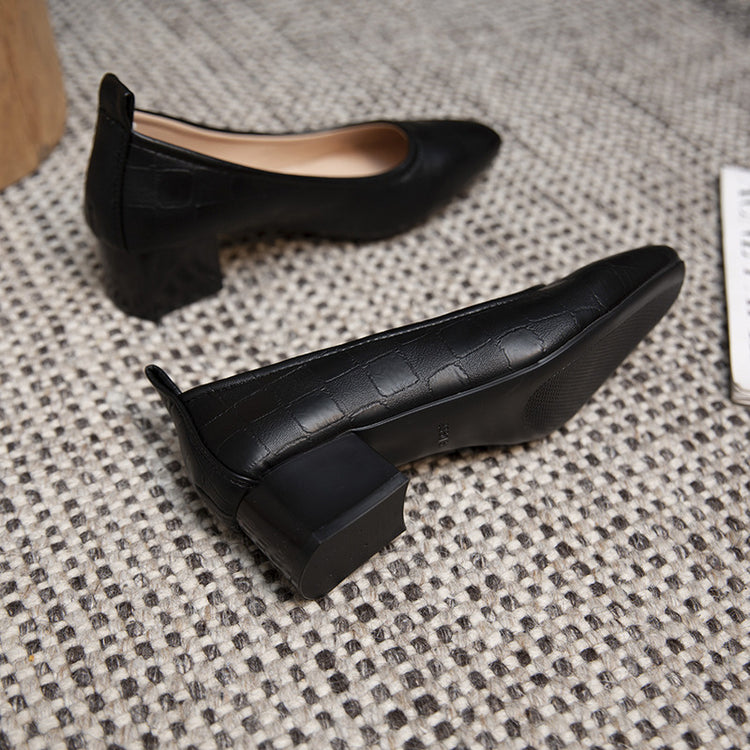 Classic Minimalist Block Heel Pumps are simple and elegant women's shoes that feature a block heel and a minimalist design. these pumps are both comfortable and durable, making them a perfect choice for any occasion. The timeless design and versatile style make these pumps a staple in any fashion-conscious woman's wardrobe.