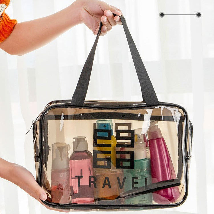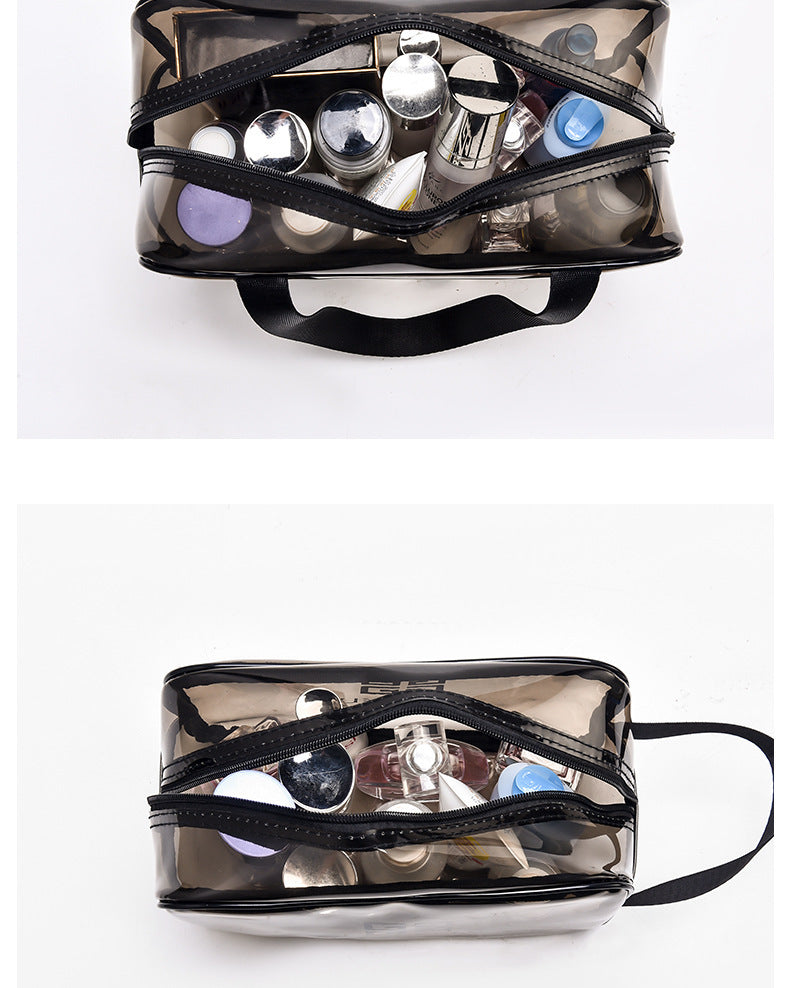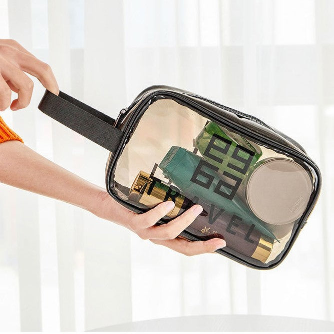 Makeup Pouch, PVC Black Transparent 3-piece Set, Large Capacity, Waterproof