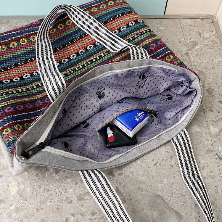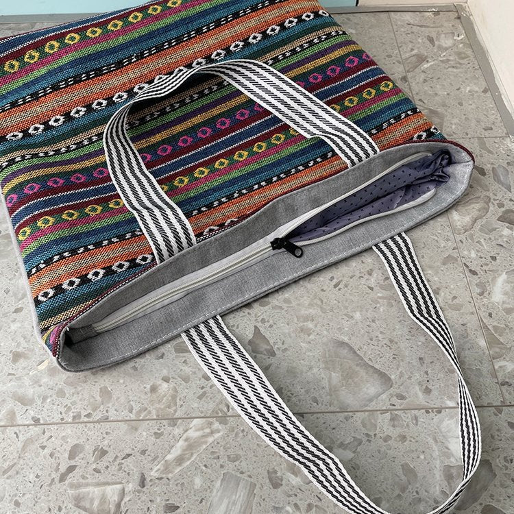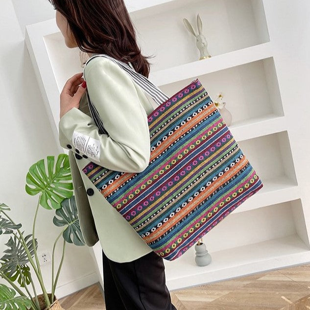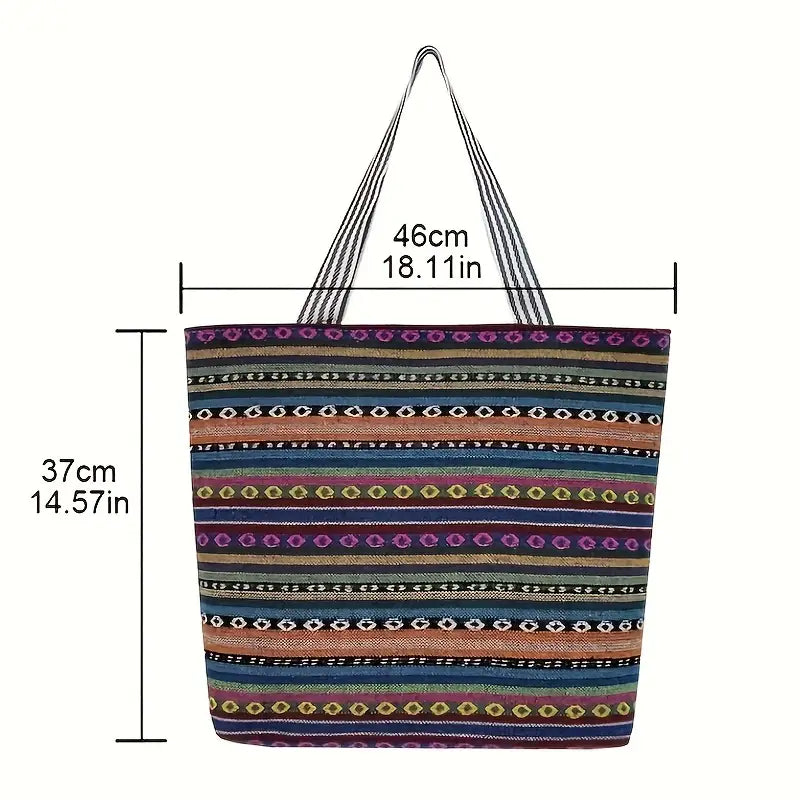 Vintage Ethnic Style Tote Bag, Retro Large Capacity Shoulder Bag