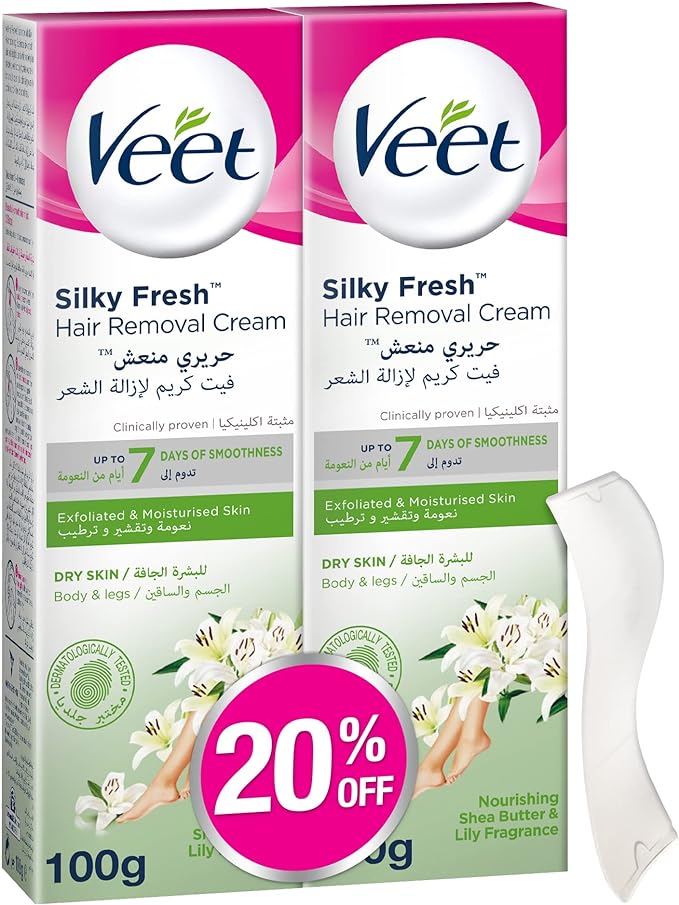Veet Silky Fresh Hair Removal Cream Body & Legs for Dry Skin, Pack of 2