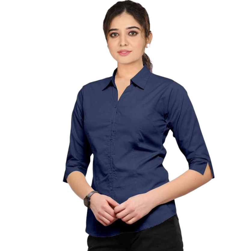 Women Regular Fit Solid Casual Shirt Navy Blue