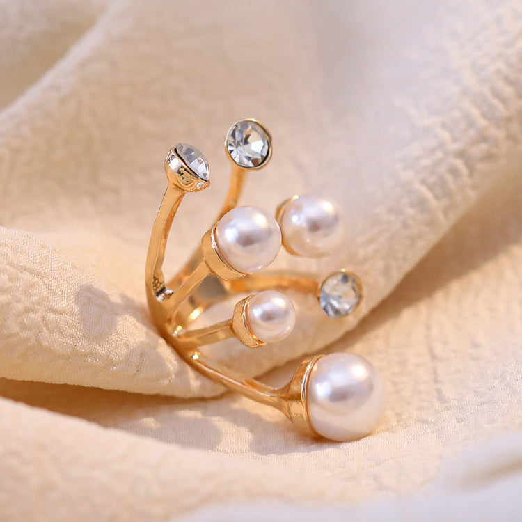 Diamond Geometric Exaggerated Large Pearl Irregular Opening Ring index Finger Ring