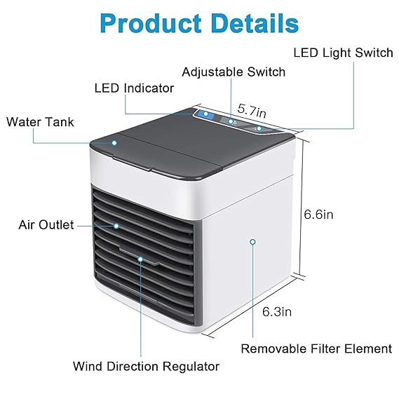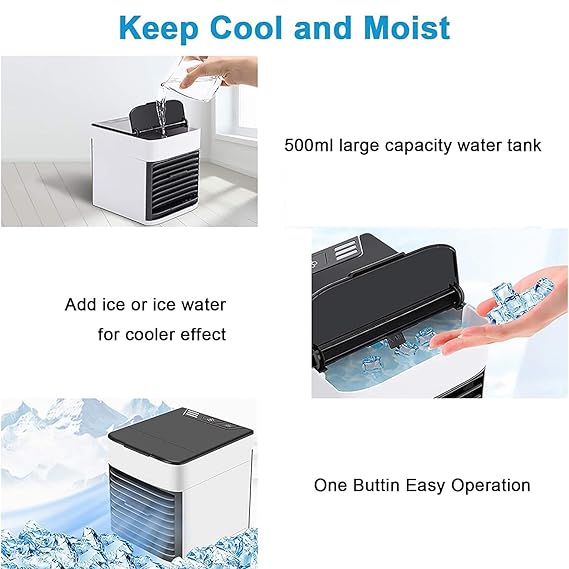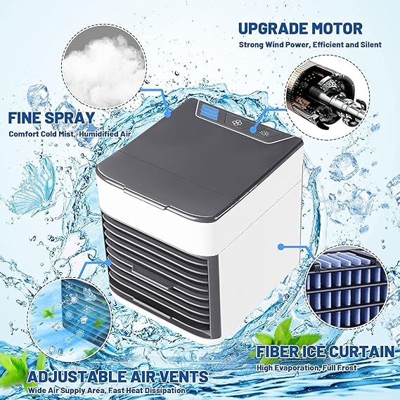 Evaporative Portable Air Cooler: Enjoy cool, clean air anywhere with this personal air conditioner that cools, humidifies and purifies, featuring 3 fan speeds and a multi directional air vent