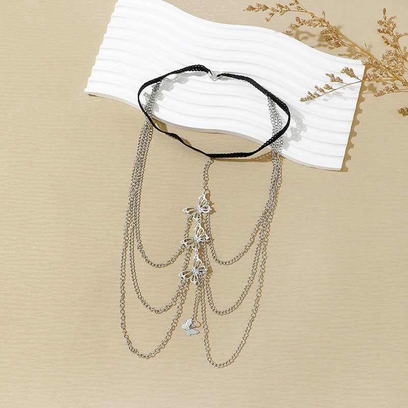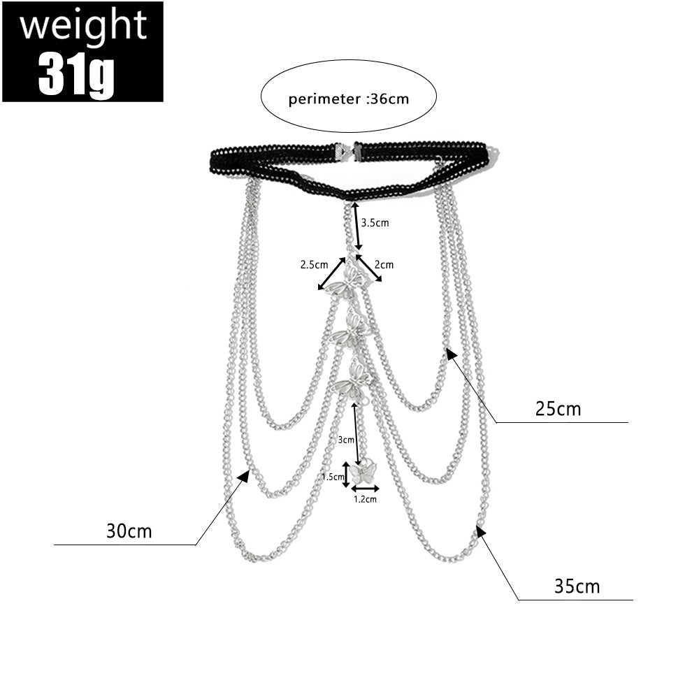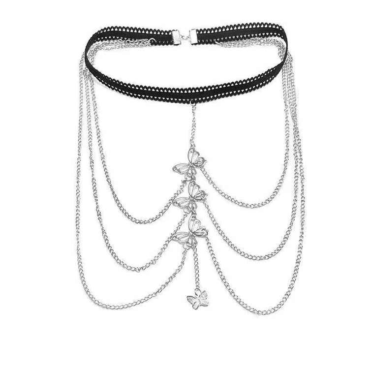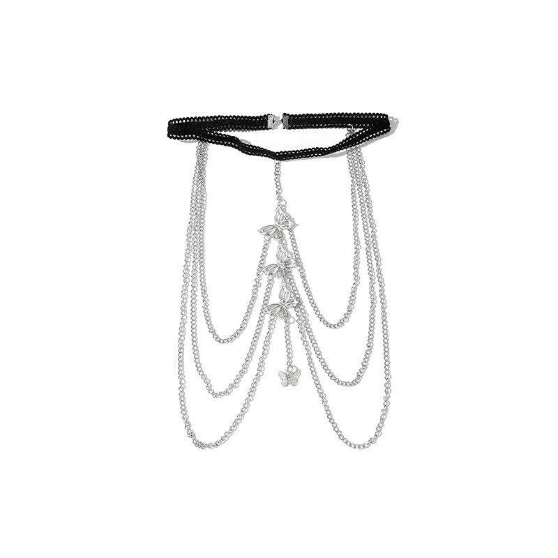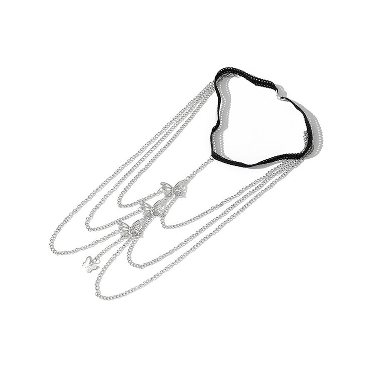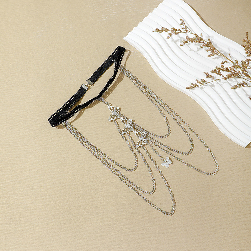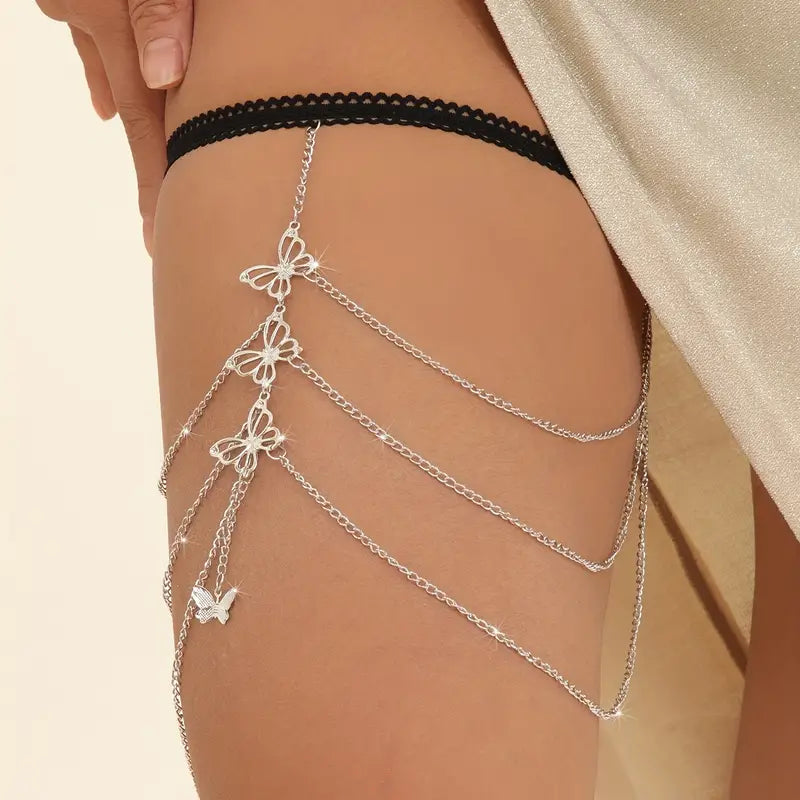 Silver Leg Chain Exaggerated Sexy, Lace elastic rope butterfly