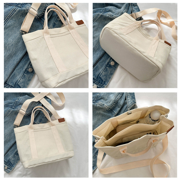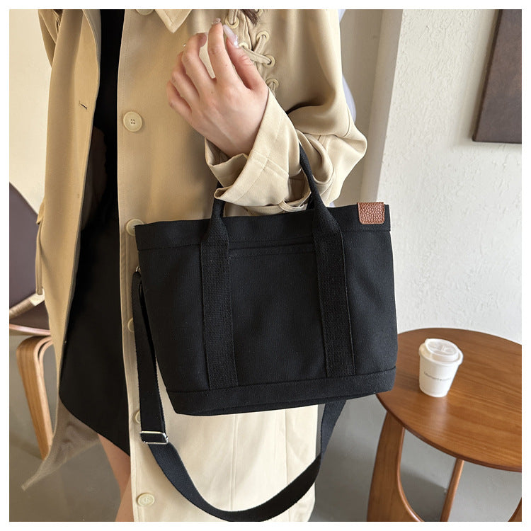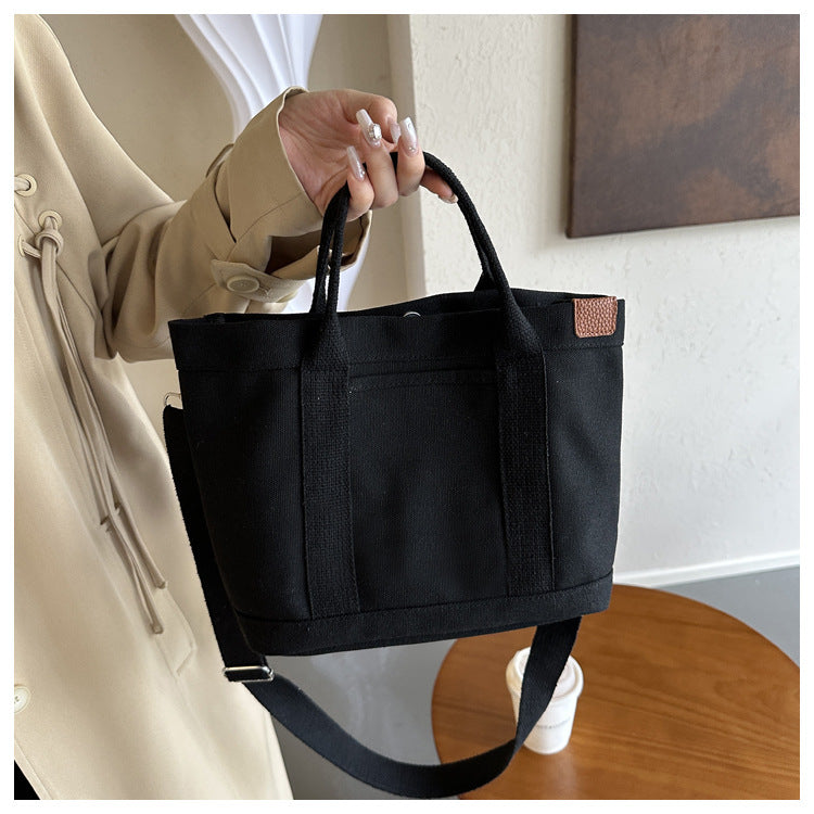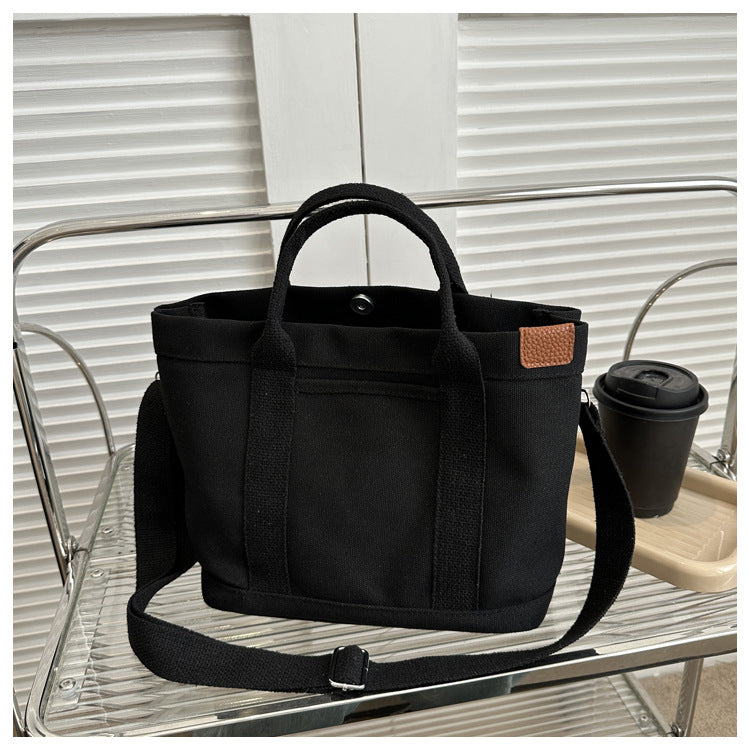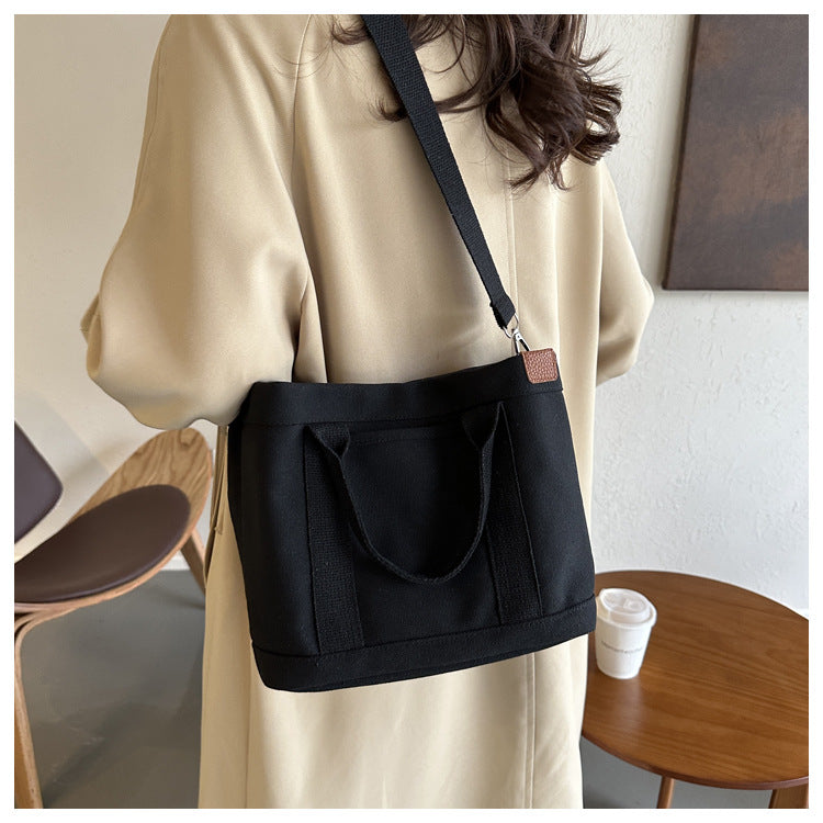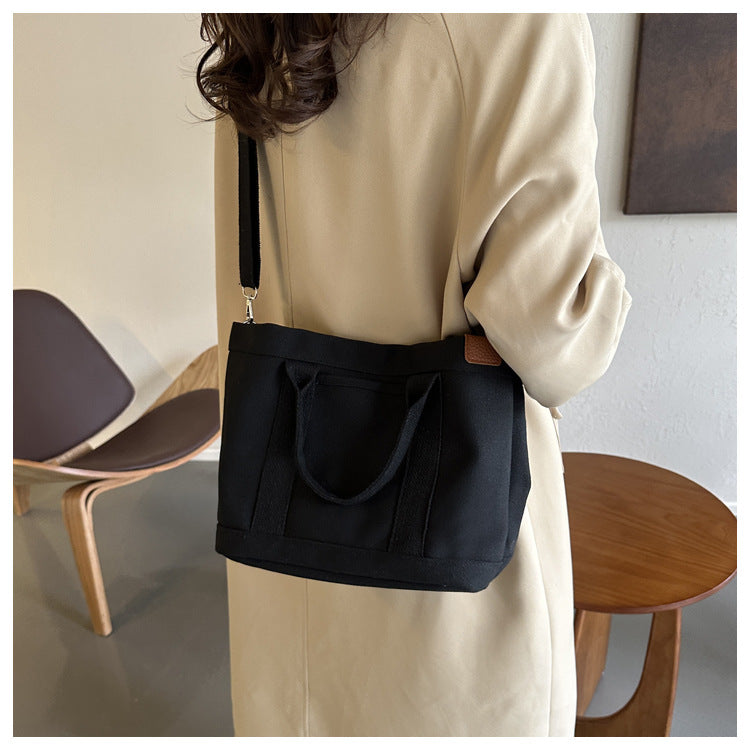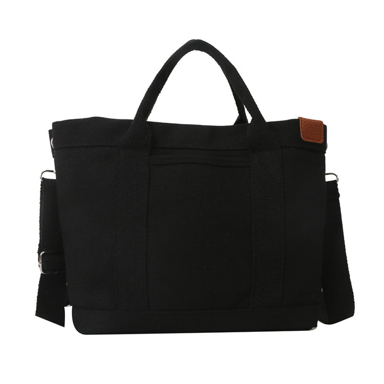 Black Canvas Tote Bag, Multi Pockets Shoulder Bag