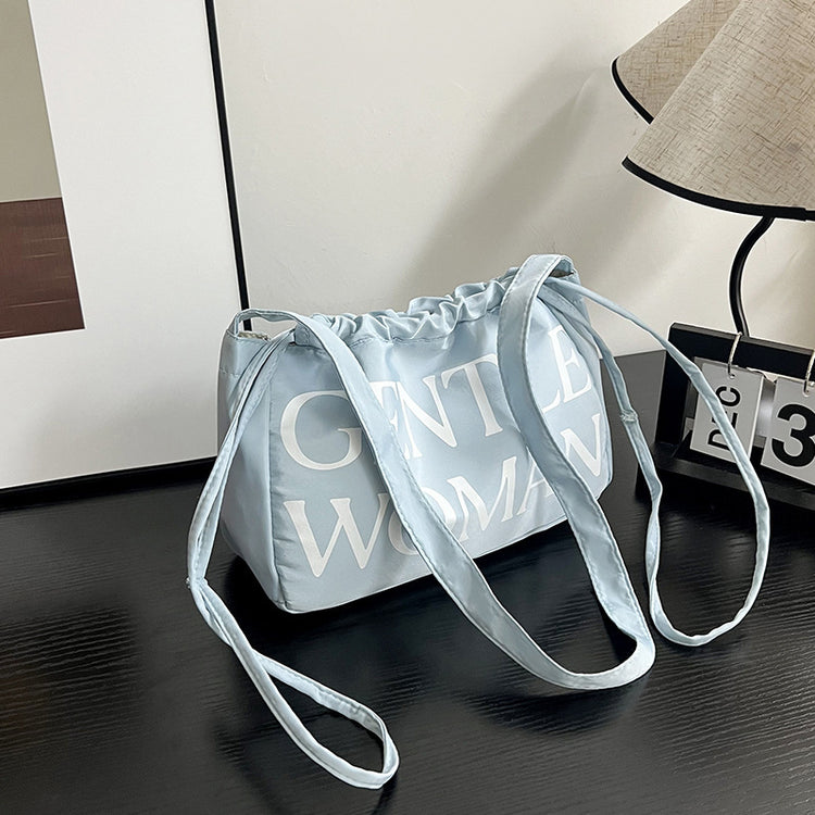 Simple Casual Letter Print Drawstring Shoulder Underarm Bag