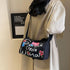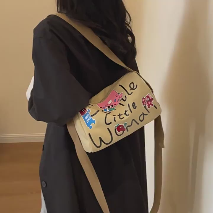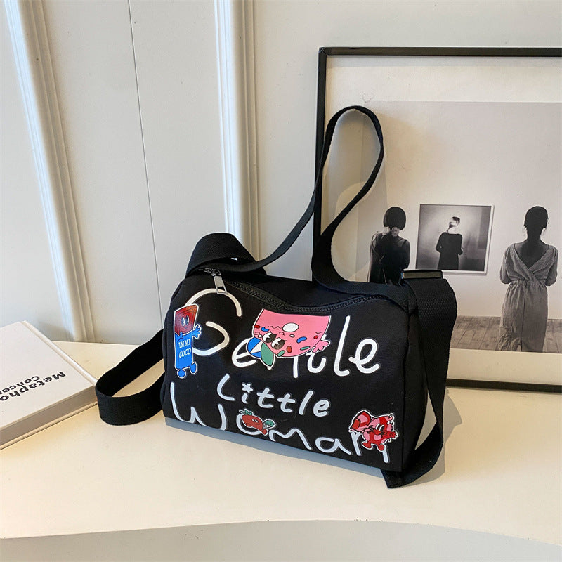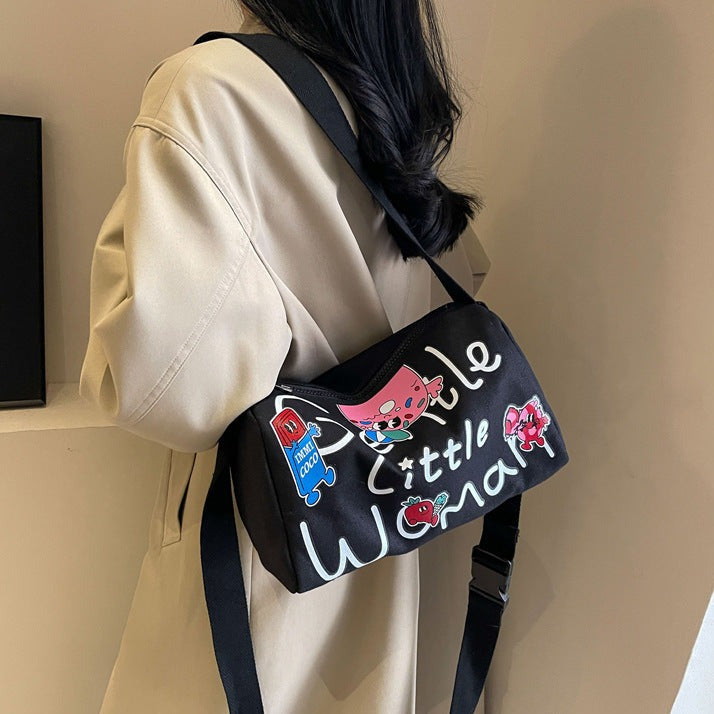 Cartoon Printed Letters Boston Canvas Bag Black color
