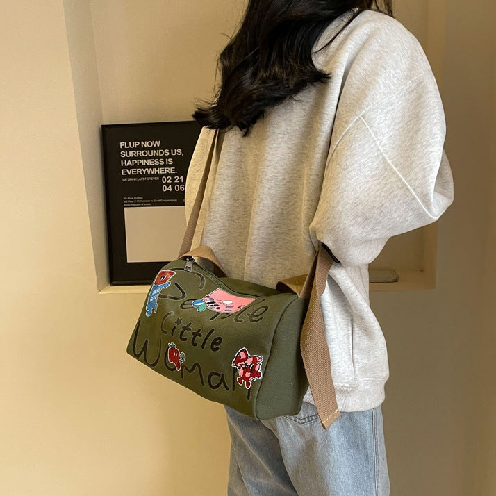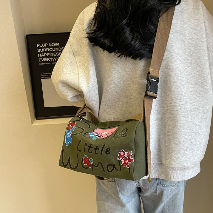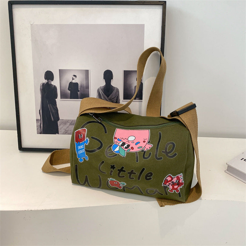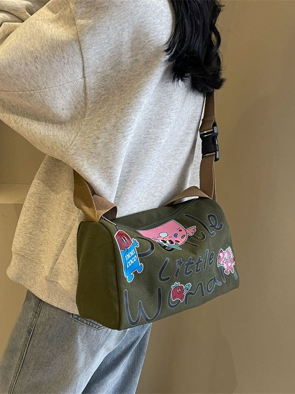 Cartoon Printed Letters Boston Canvas Bag Green color