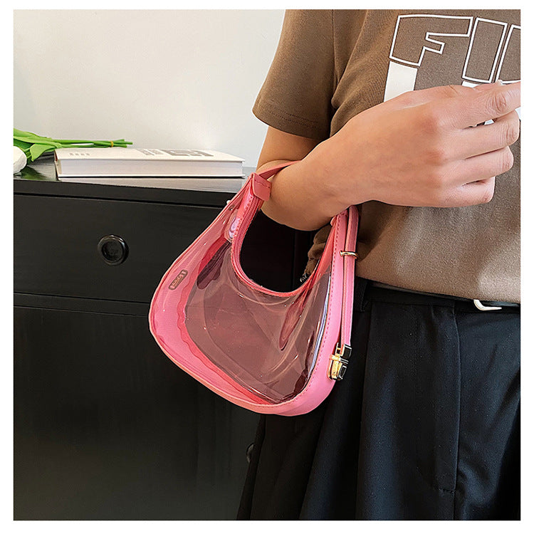 Trendy colored Transparent Crescent handbag