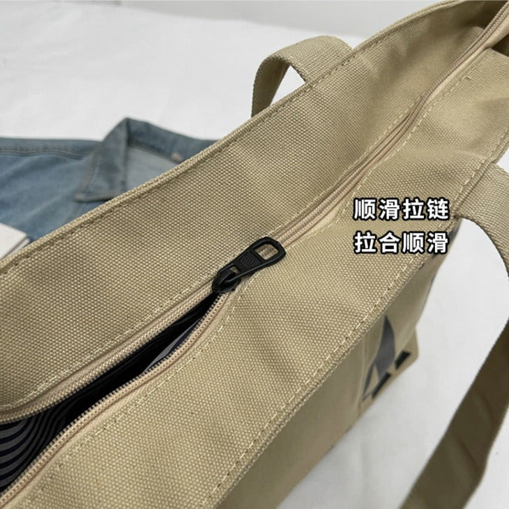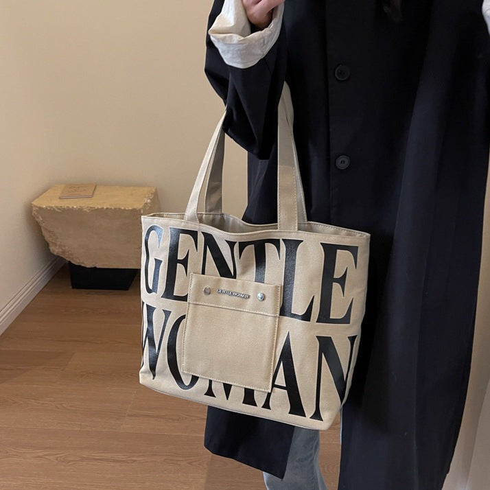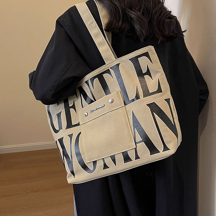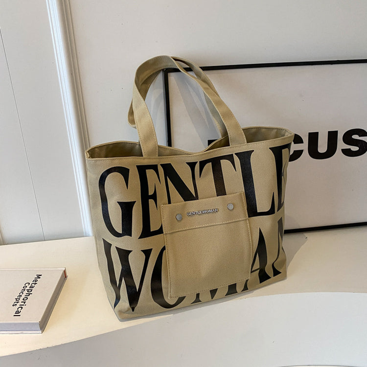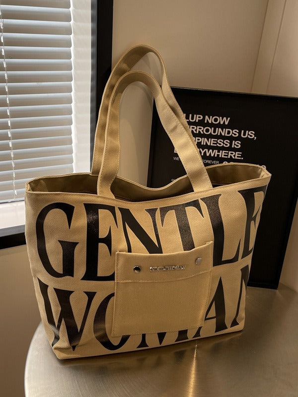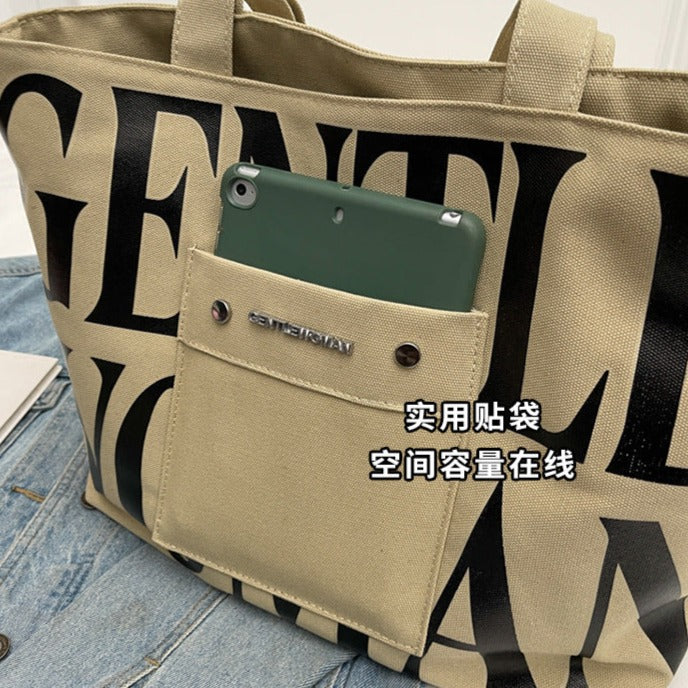 Khaki Large Capacity Letter Printed Tote Canvas Handbag Shoulder Bag