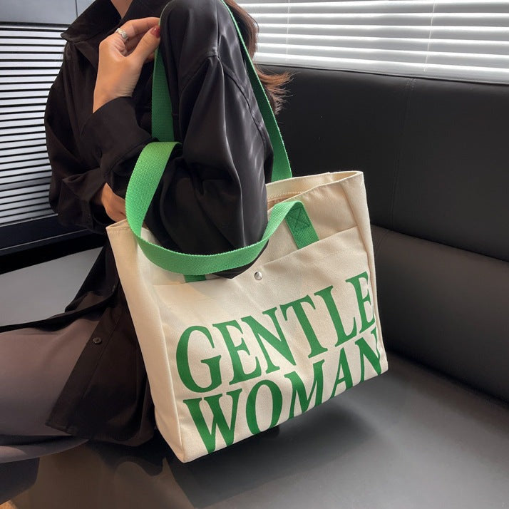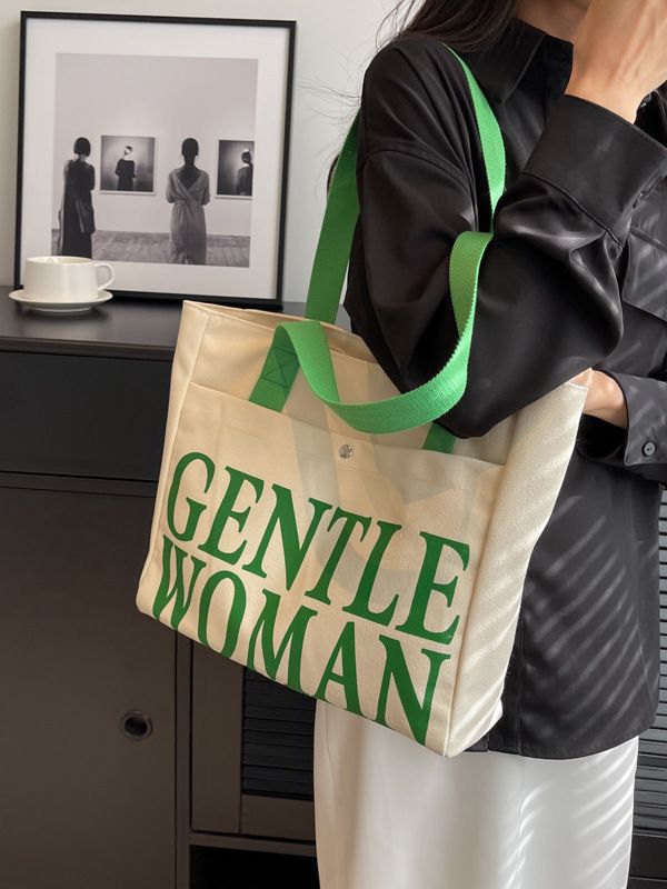 Large Letter Printed Canvas Shoulder Bag Green color Prints & Handle