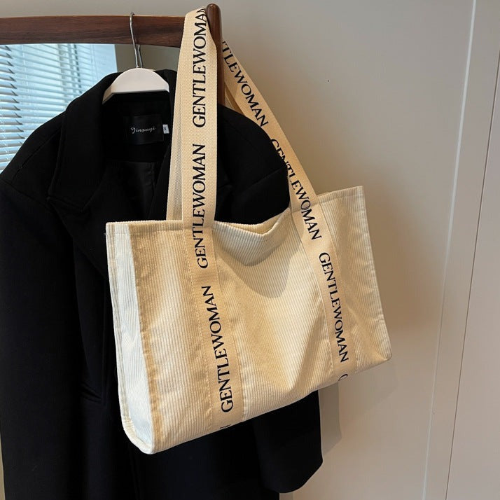 off-white Corduroy Bag Large Capacity Tote Shoulder Bag