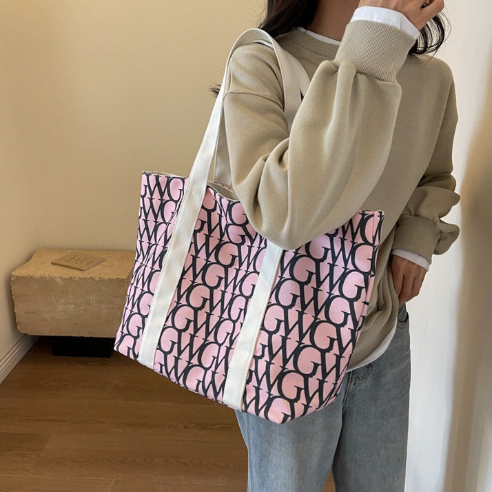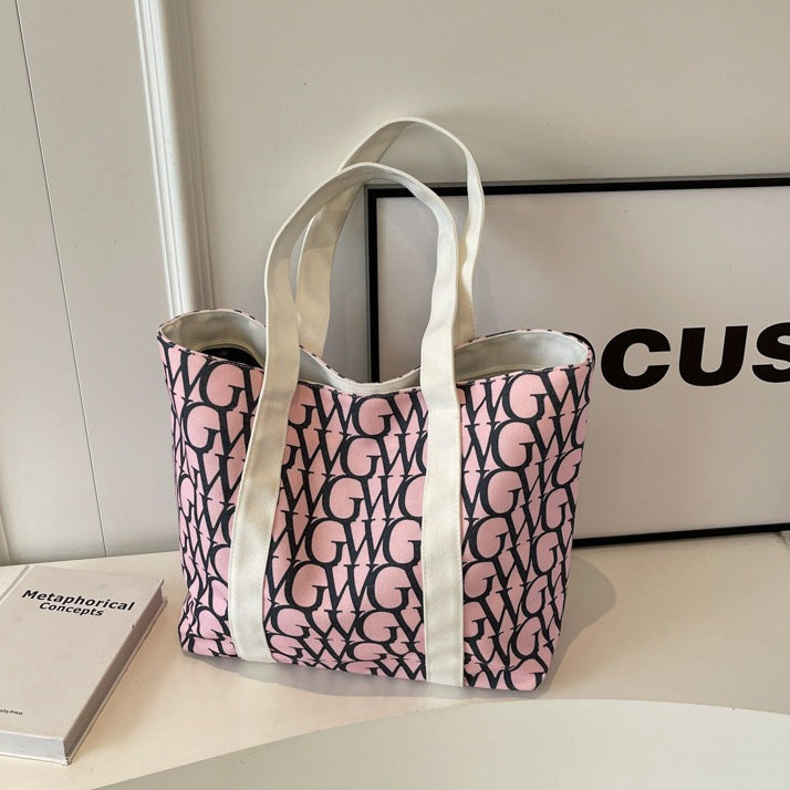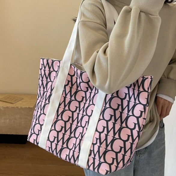 New Printed Casual Large Capacity Tote Shoulder Bag Powder Pink color
