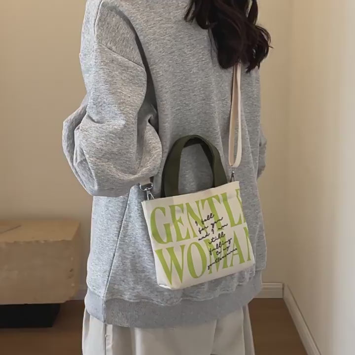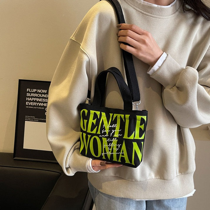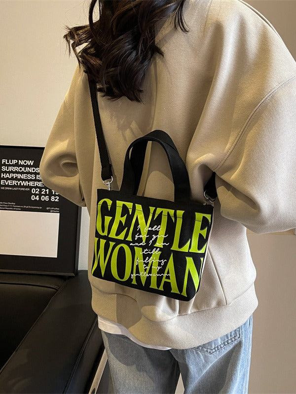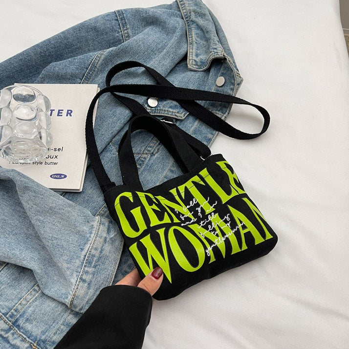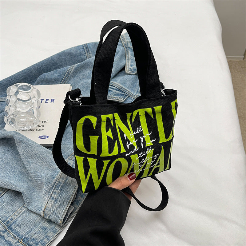 Color Printed Canvas Shoulder Bag Black with Green Prints
