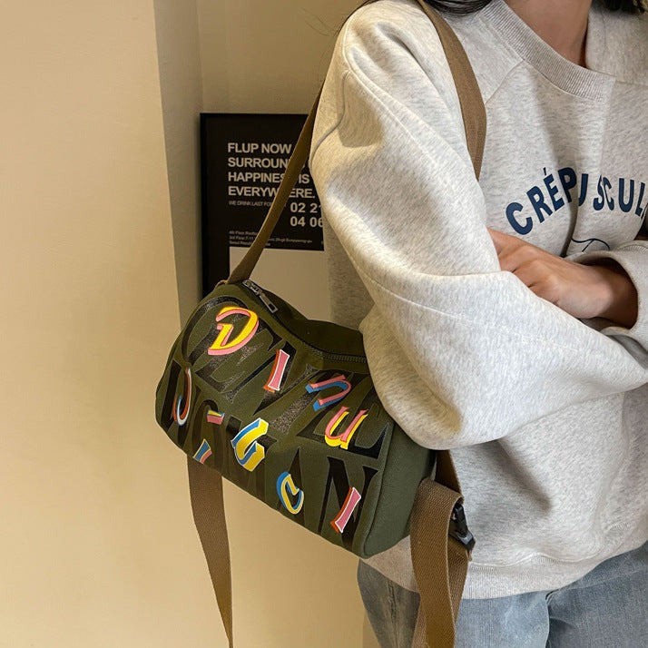 Printed Letters Boston Canvas Bag Green color