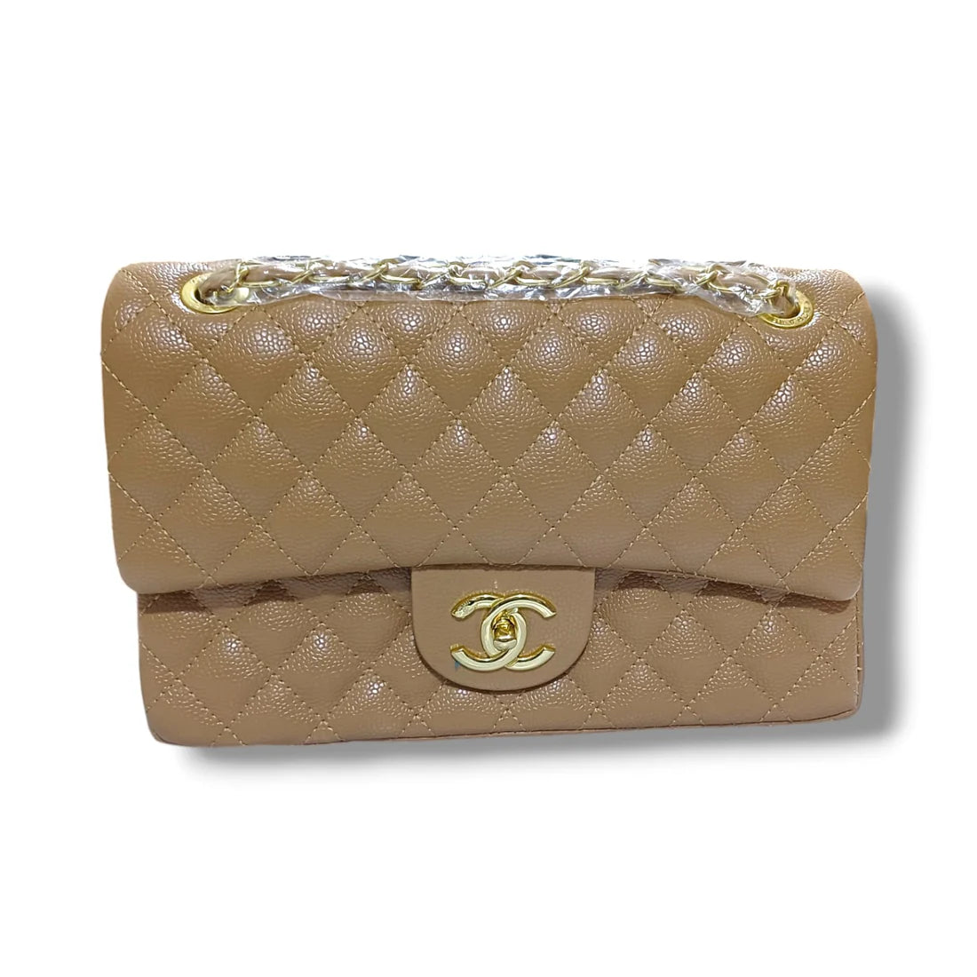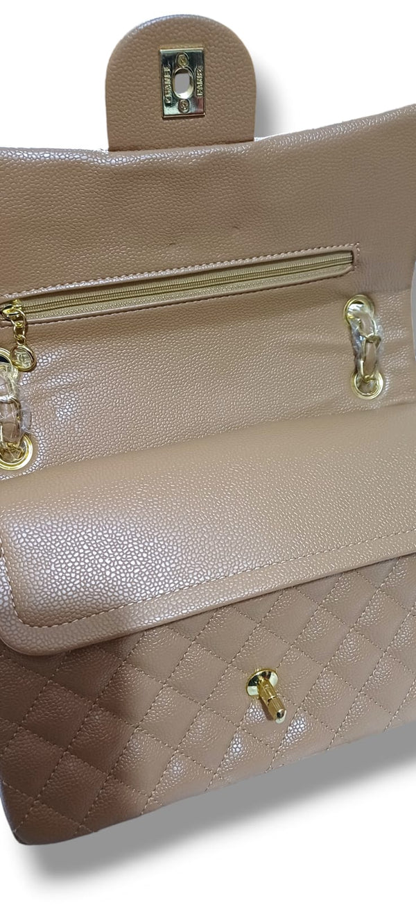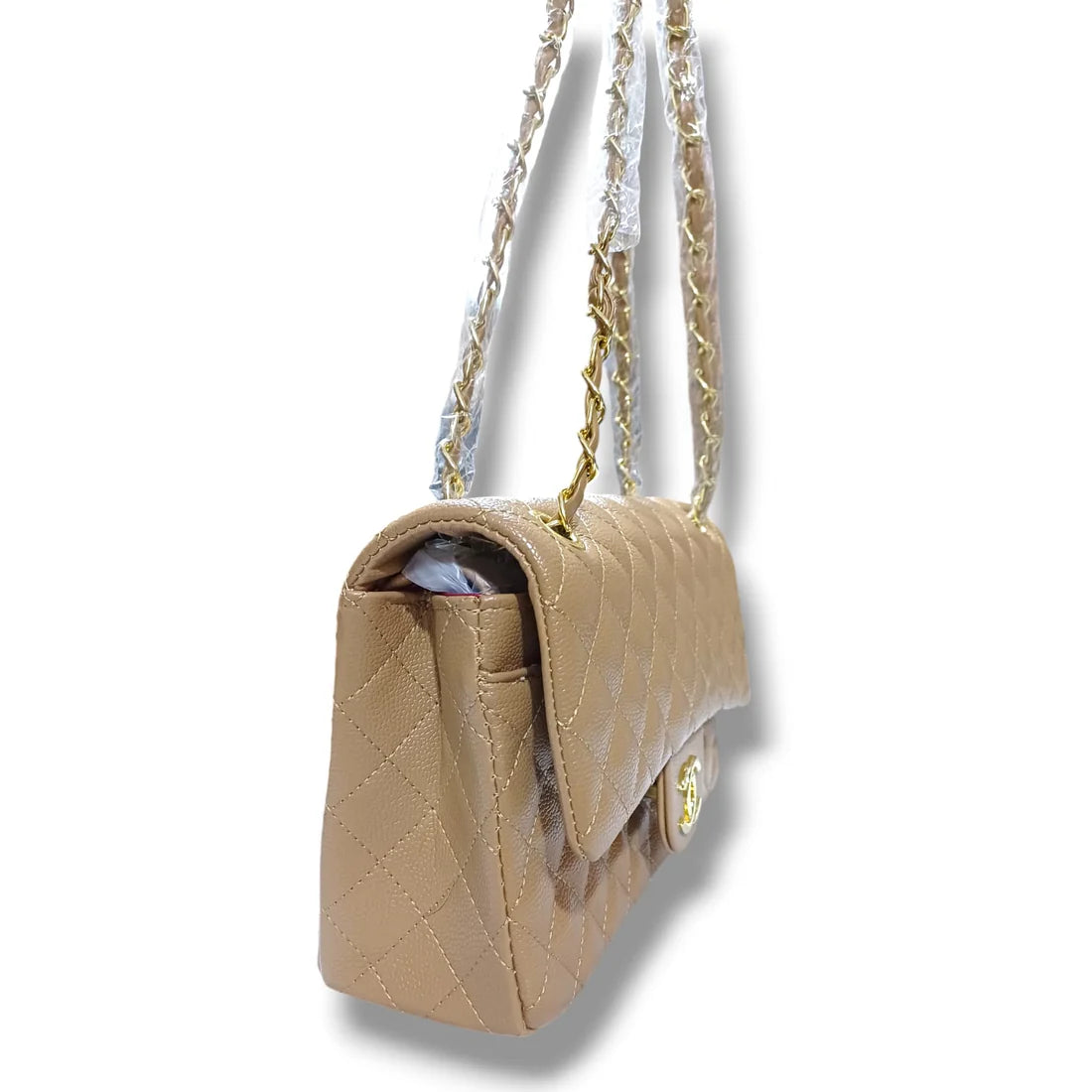 Double Flap Caviar Leather skin Sling Bag ( Nude ) Khaki color