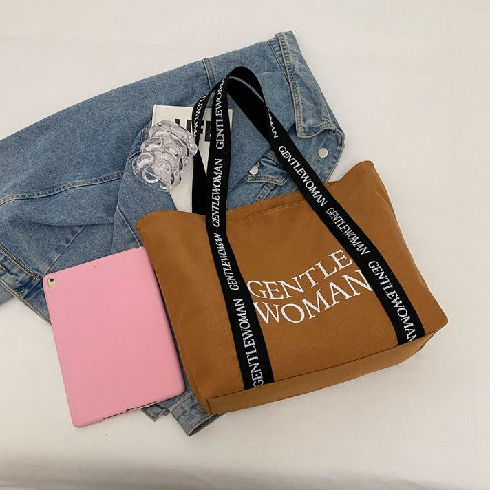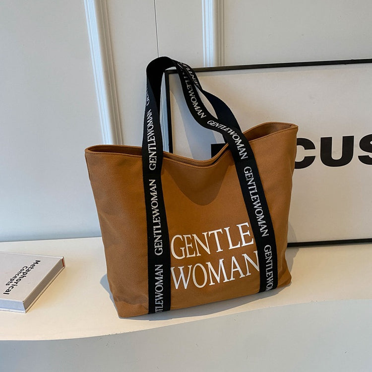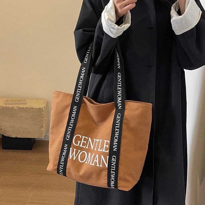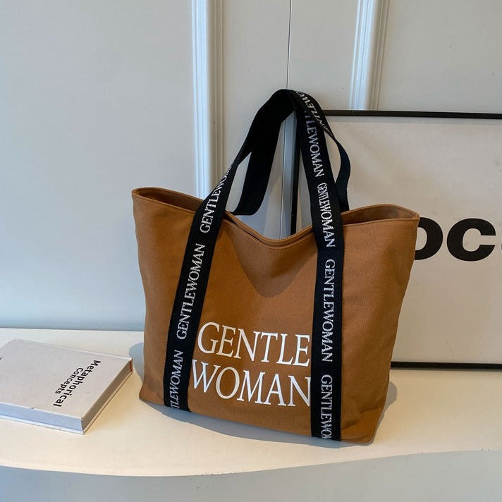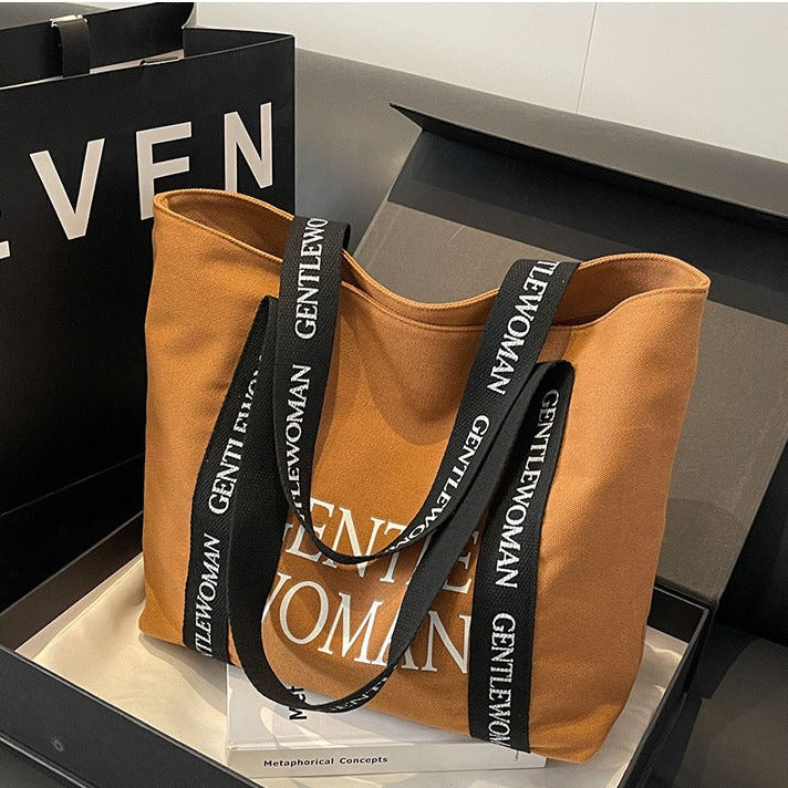 Large Canvas Shoulder Bag in Brown