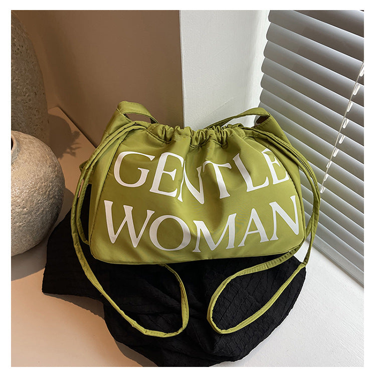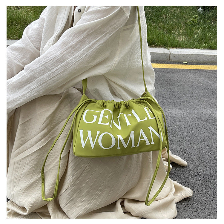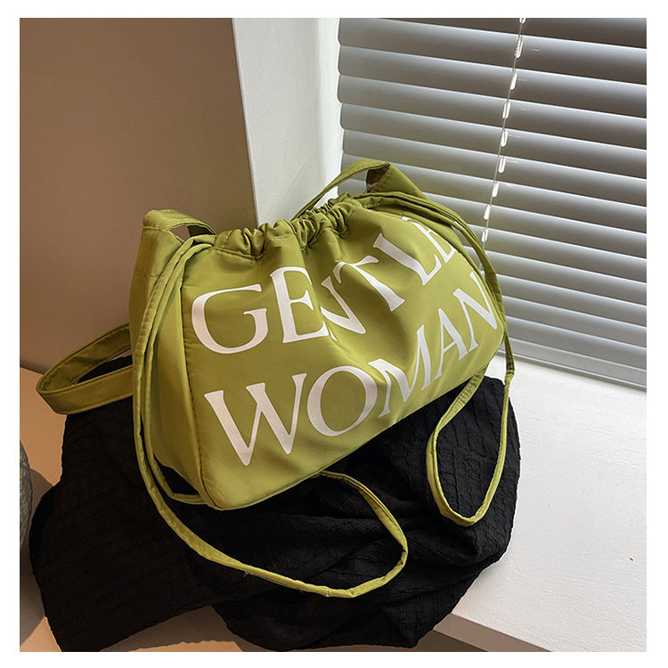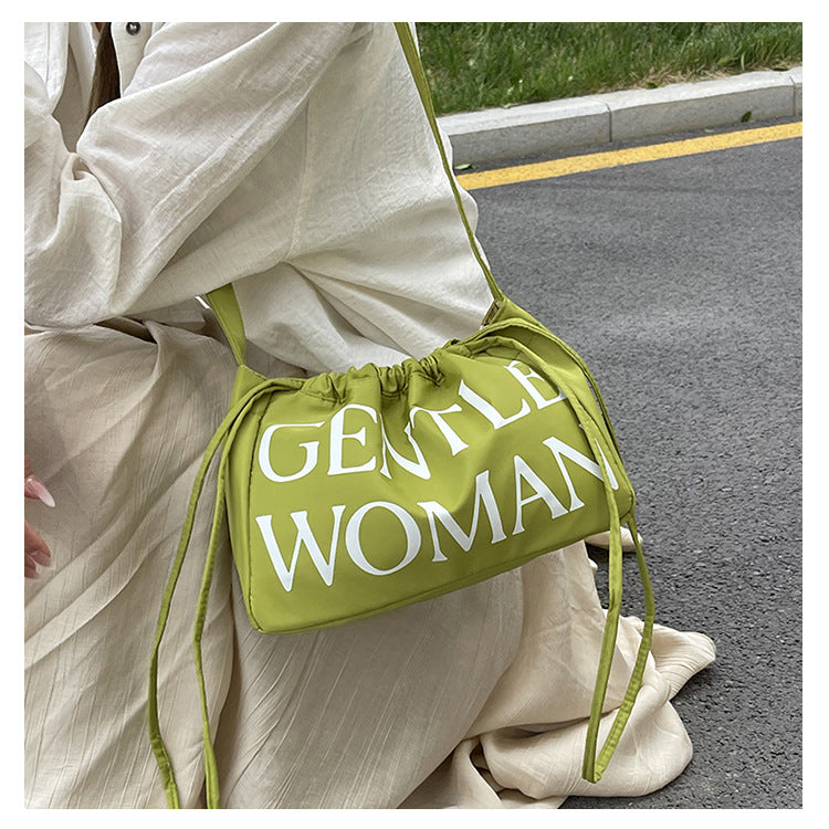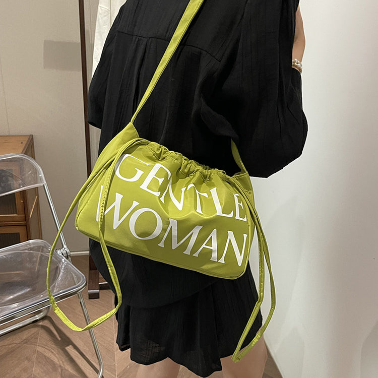 Simple Casual Letter Print Drawstring Shoulder Underarm Bag