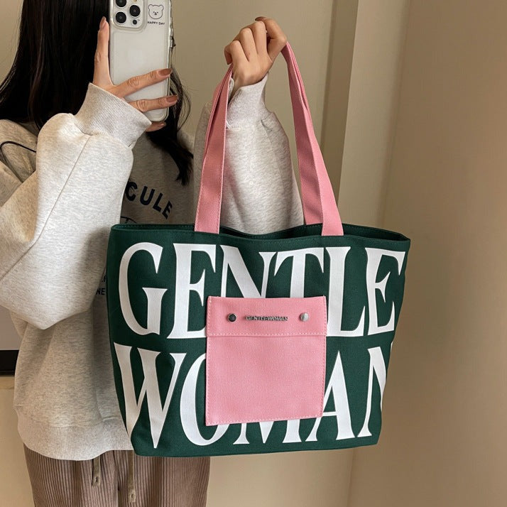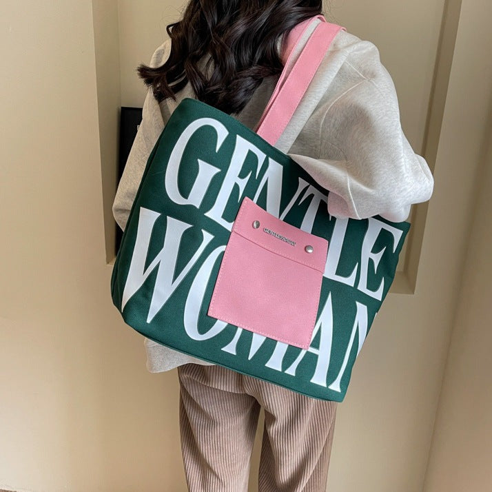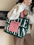 Large Capacity Letter Printed Tote Canvas Handbag Shoulder Bag