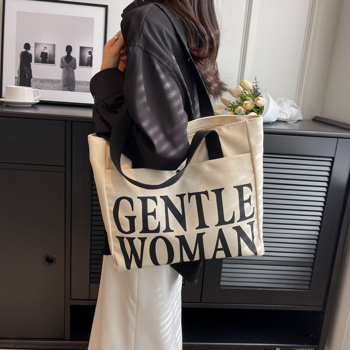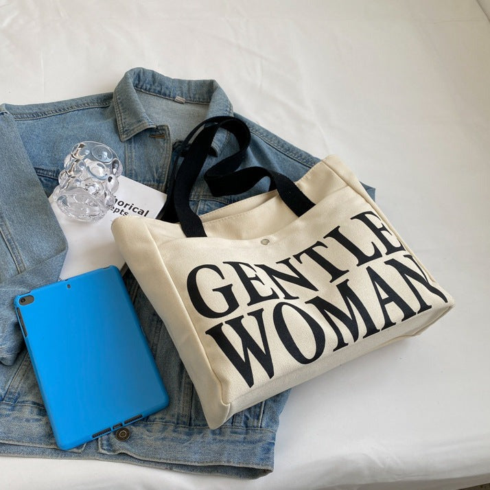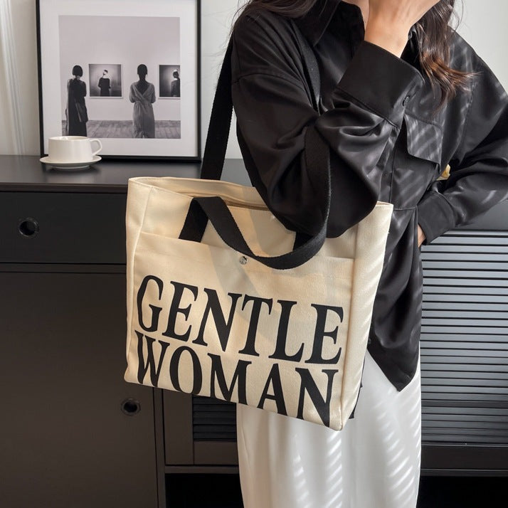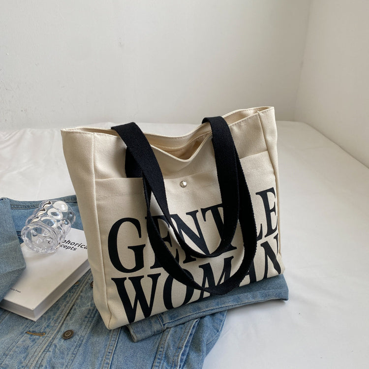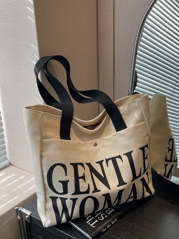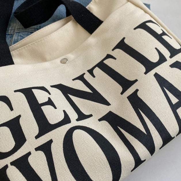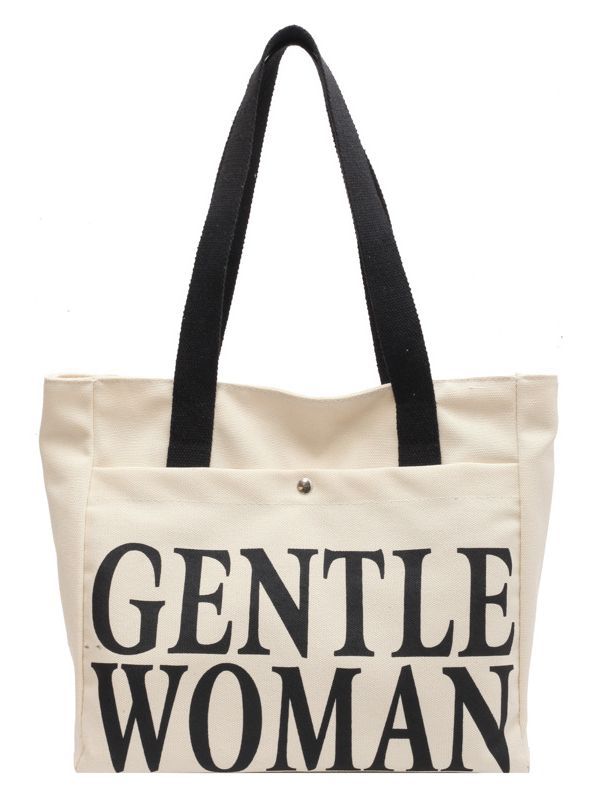 Large Letter Printed Canvas Shoulder Bag Black color Prints & Handle