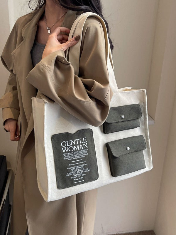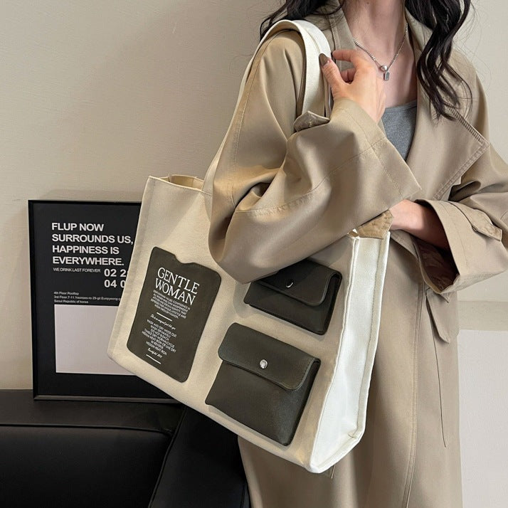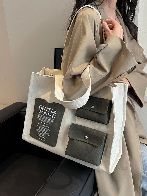 off-White Multi-Pocket Large Canvas Bag with green pockets