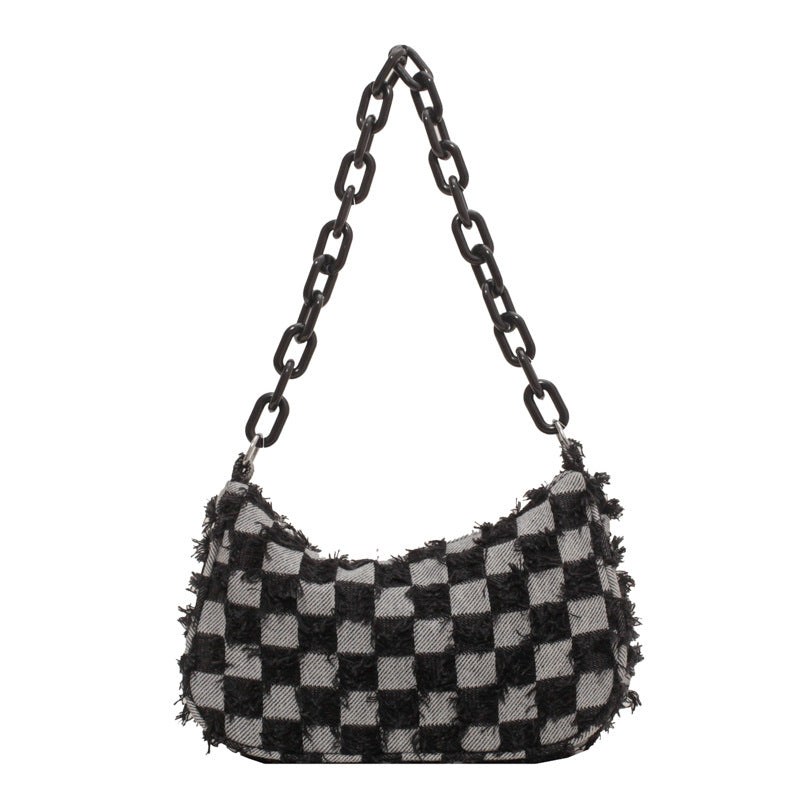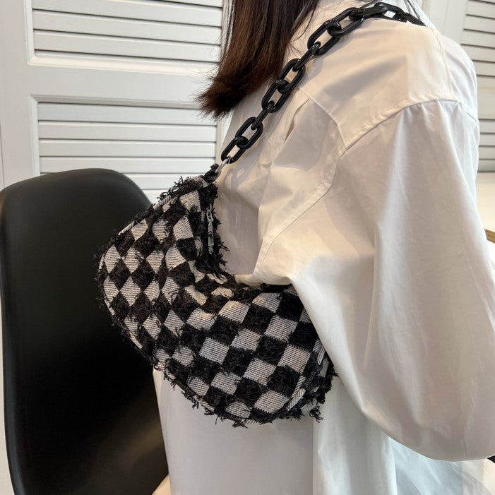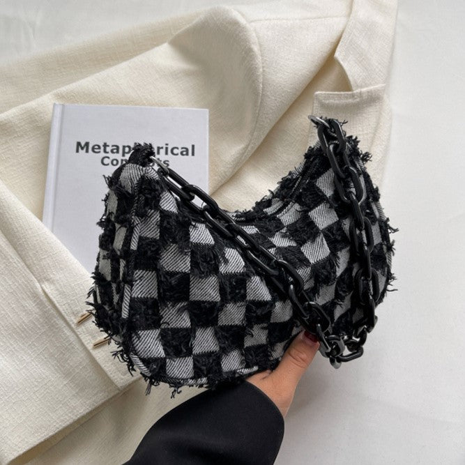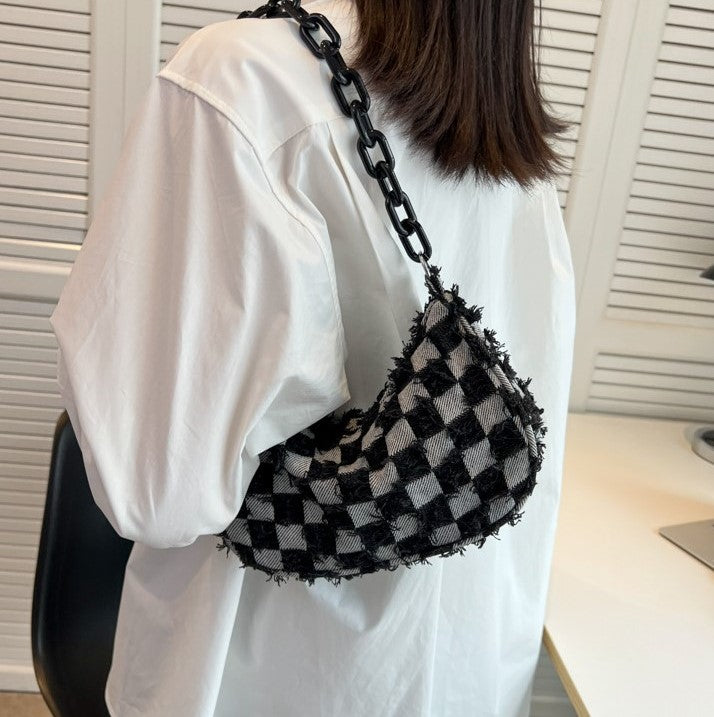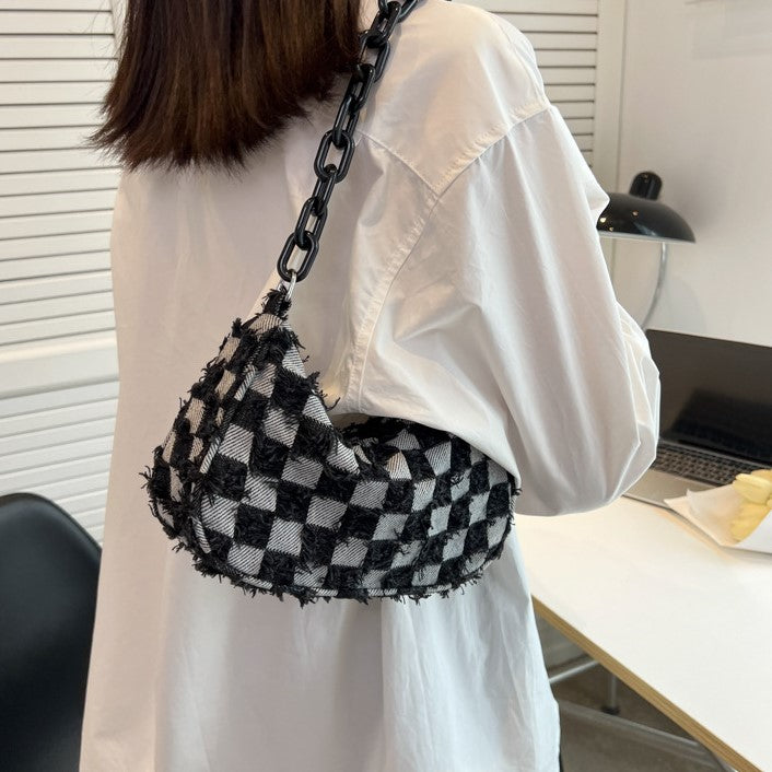 Trendy Denim Checker Chain Shoulder Bag