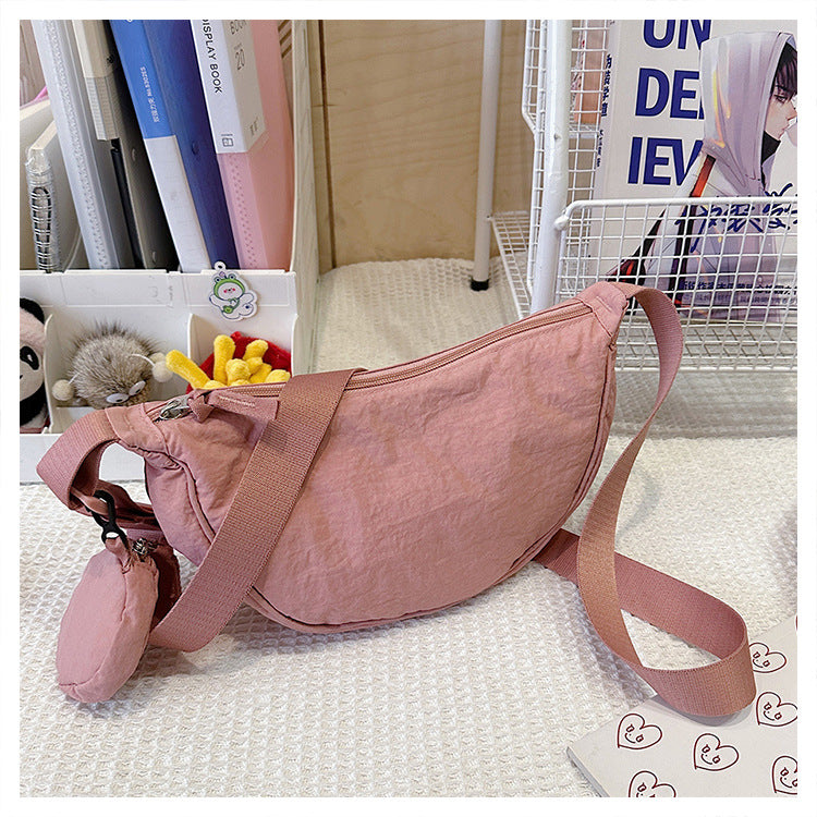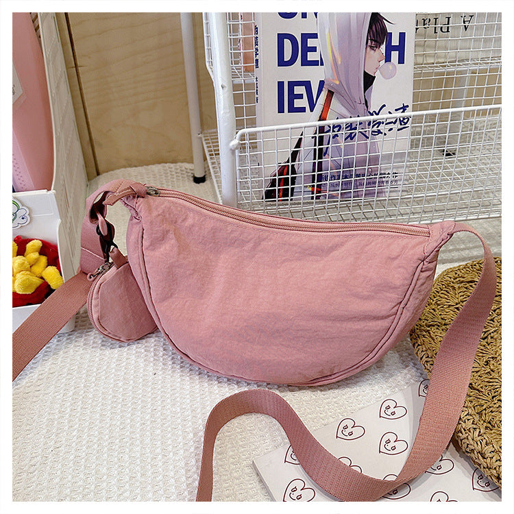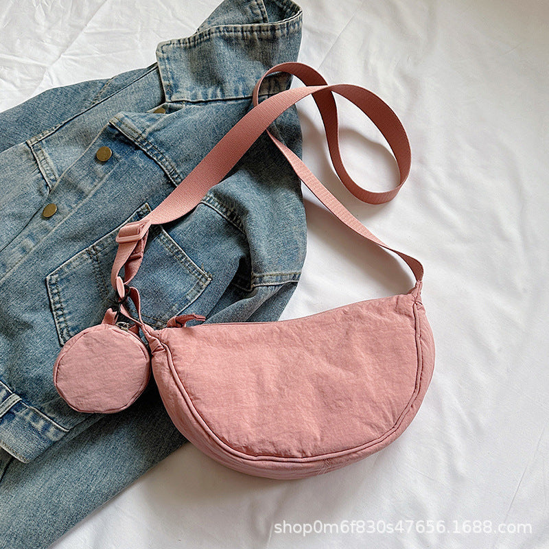 Dumpling Shoulder with Zip Closure, Solid Color with Coin Purse
