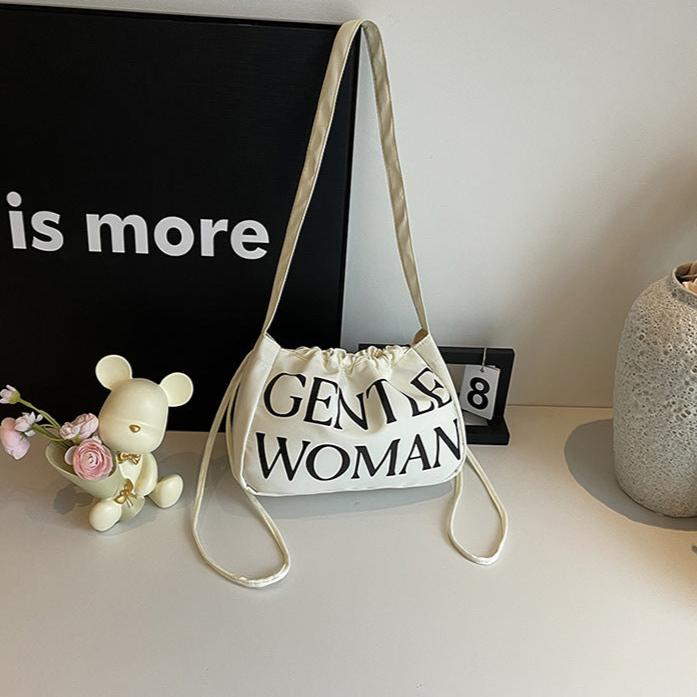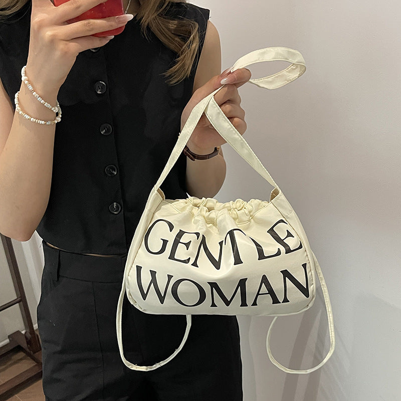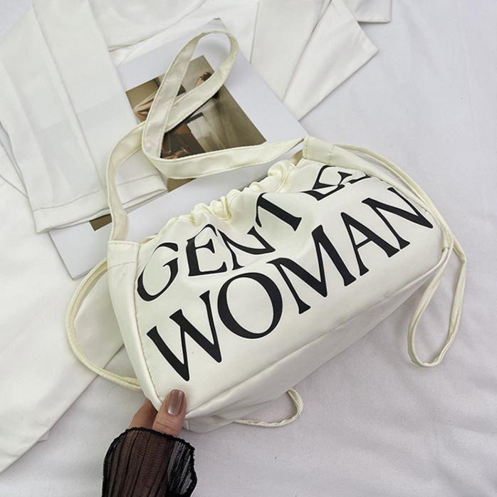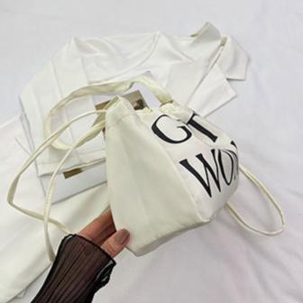 Simple Casual Letter Print Drawstring Shoulder Underarm Bag