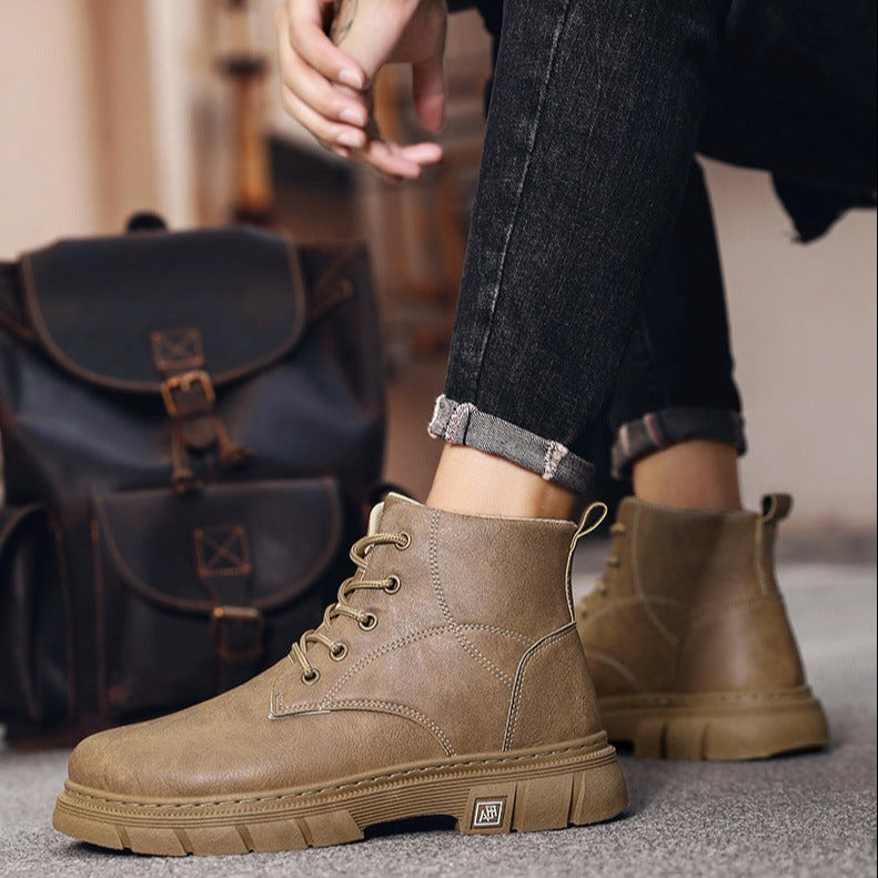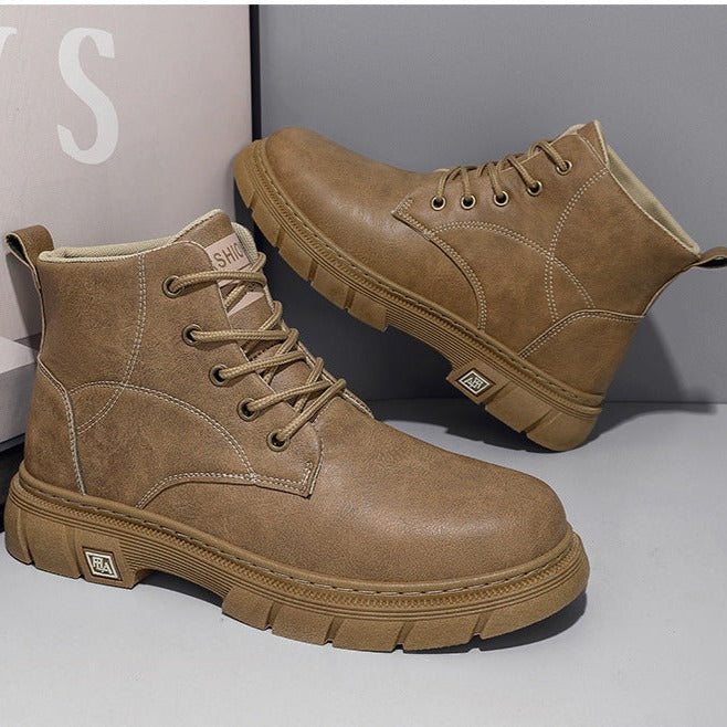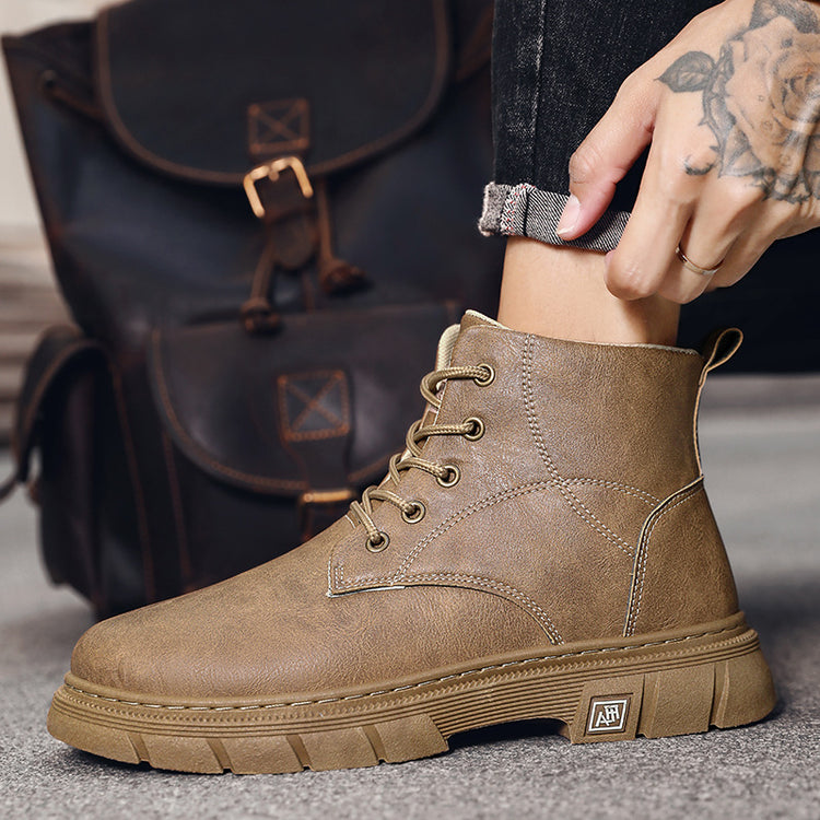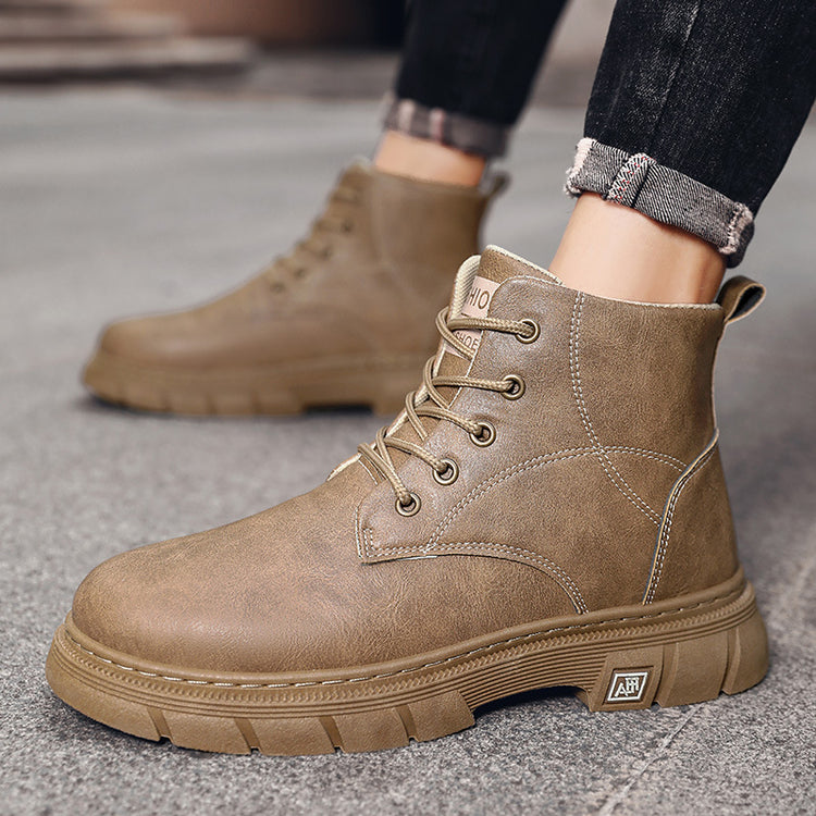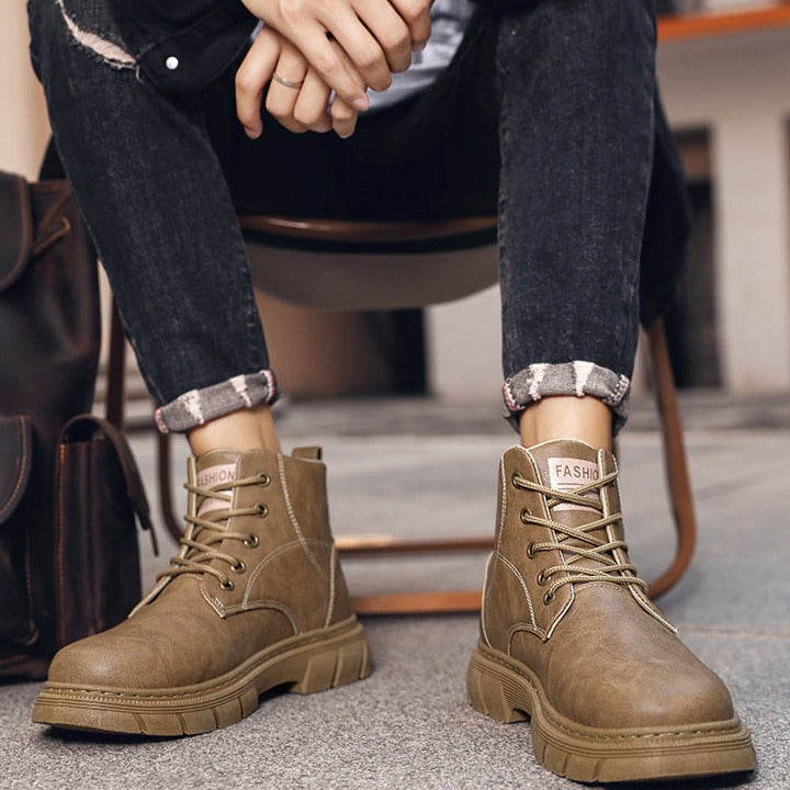British style Martin boots high top casual leather shoes thick bottom short barrel trendy boots