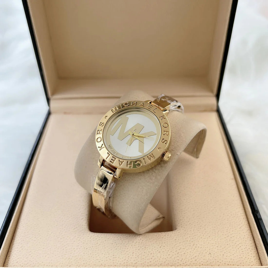Women Gold White Dial Stainless Steel Analog Bangle Watch