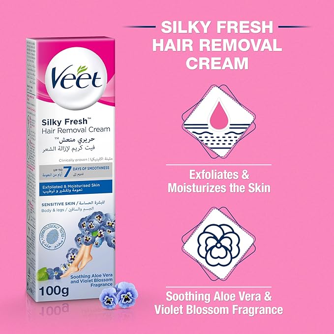 Veet Silky Fresh Hair Removal Cream Body & Legs for Sensitive Skin, Pack of 2