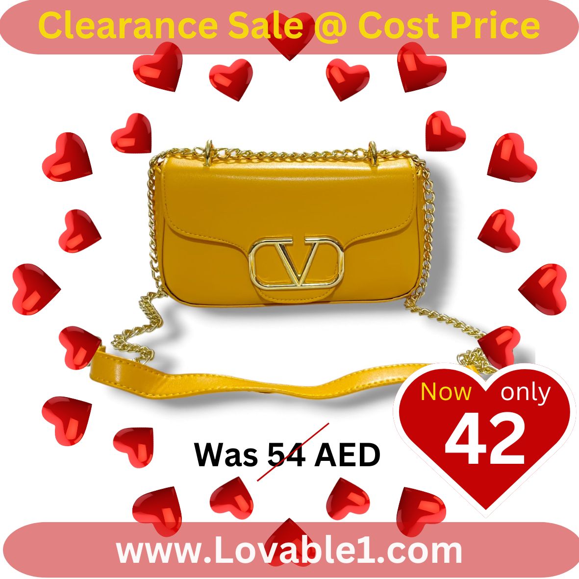 V Sling Flap Leather Bag ( Yellow ) (on Clearance )